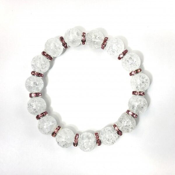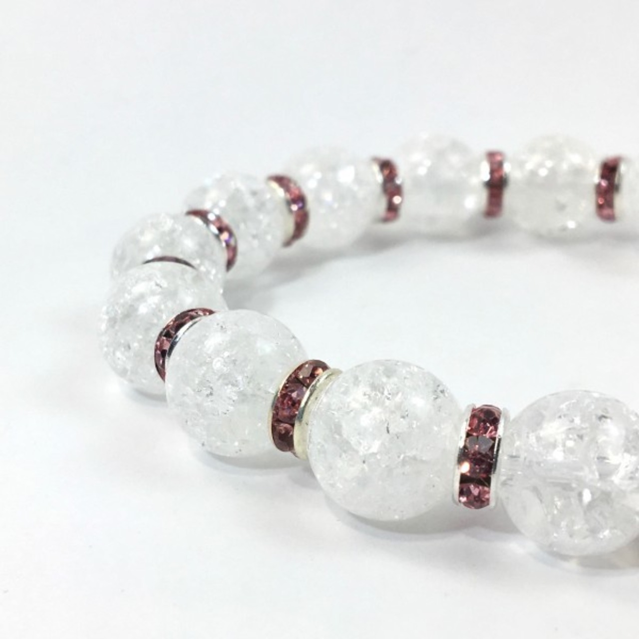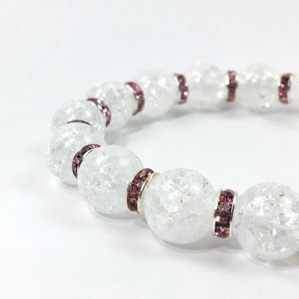 パワーストーン ブレスレット クラック水晶 12mm 天然石ブレス (ピンク)メンズ・レディース 男性・女性 数珠ブレス 開運