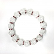 こちらは、12mm玉のクラック水晶を使用した天然石ブレスレットです。石との間にはロンデルを挟み高級感を演出しています。シンプルなデザインですのでどんなコーディネートとも合わせ易いブレスレットです。石大きさは12mm玉です。内周約18cmです。気になる方は是非この機会にどうぞ。