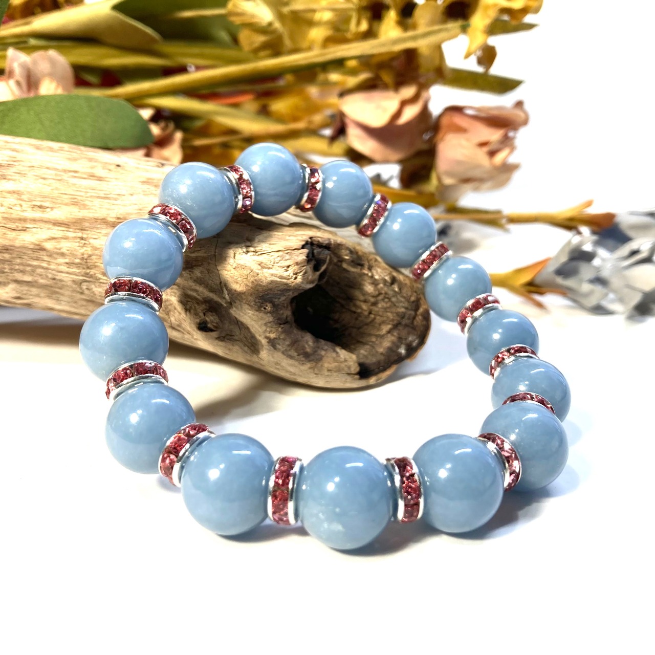 エンジェライト パワーストーン ブレスレット 12mm 天然石ブレス (ピンク)メンズ・レディース 男性・女性 数珠ブレス 開運