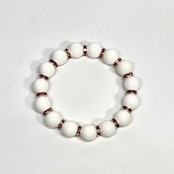 こちらは、12mm玉のホワイトオニキスを使用した天然石ブレスレットです。石との間にはロンデルを挟み高級感を演出しています。シンプルなデザインですのでどんなコーディネートとも合わせ易いブレスレットです。石大きさは12mm玉です。内周約18cmです。数に限りがございますので気になる方はお早めにどうぞ。
