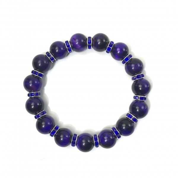 こちらは、12mm玉のパープルタイガーアイを使用したブレスレットです。石との間にはロンデルを挟み高級感を演出しています。シンプルなデザインですのでどんなコーディネートとも合わせ易いブレスレットです。石大きさは12mm玉です。内周約18cmです。気になる方は是非この機会にどうぞ。