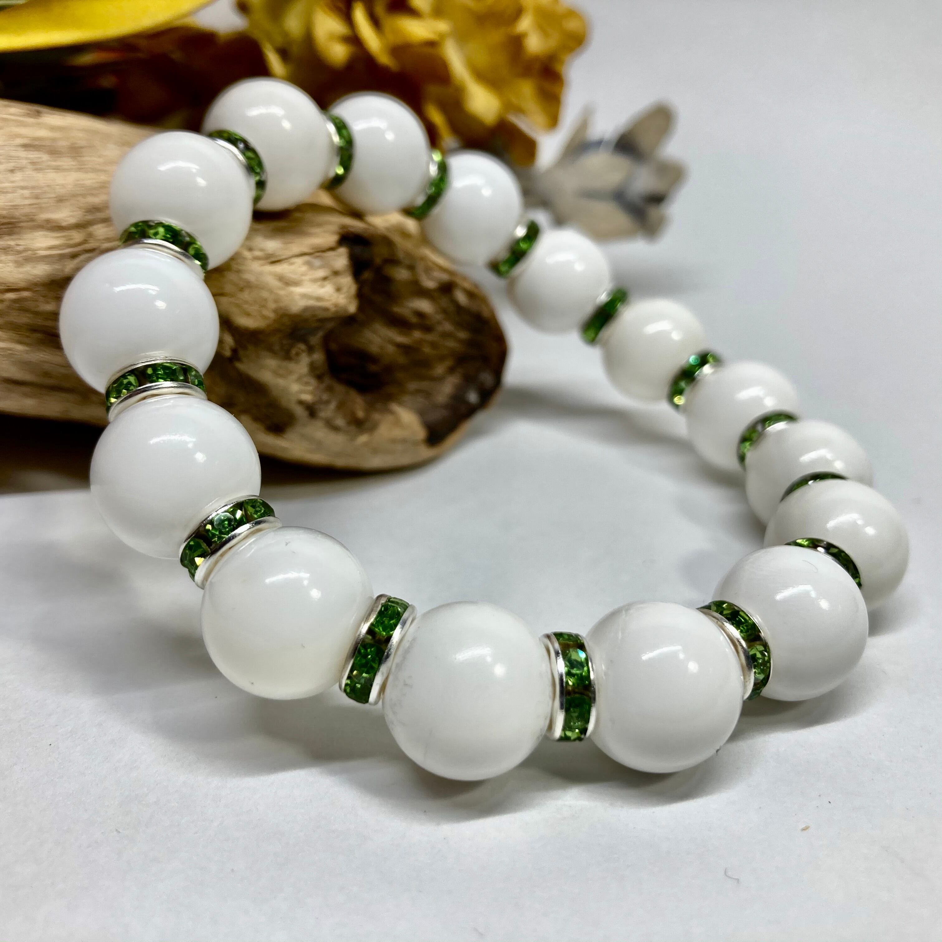 ホワイトオニキス パワーストーン ブレスレット 12mm 天然石ブレス (グリーン)メンズ・レディース 男性・女性 数珠ブレス 開運
