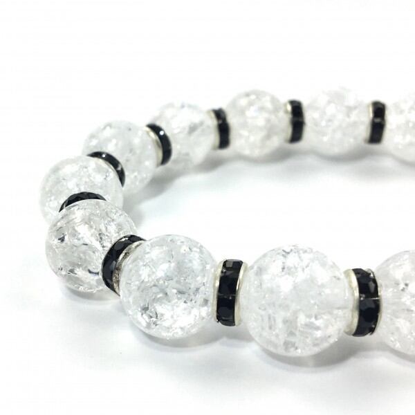 パワーストーン ブレスレット クラック水晶 12mm 天然石ブレス (ブラック)メンズ・レディース 男性・女性 数珠ブレス 開運