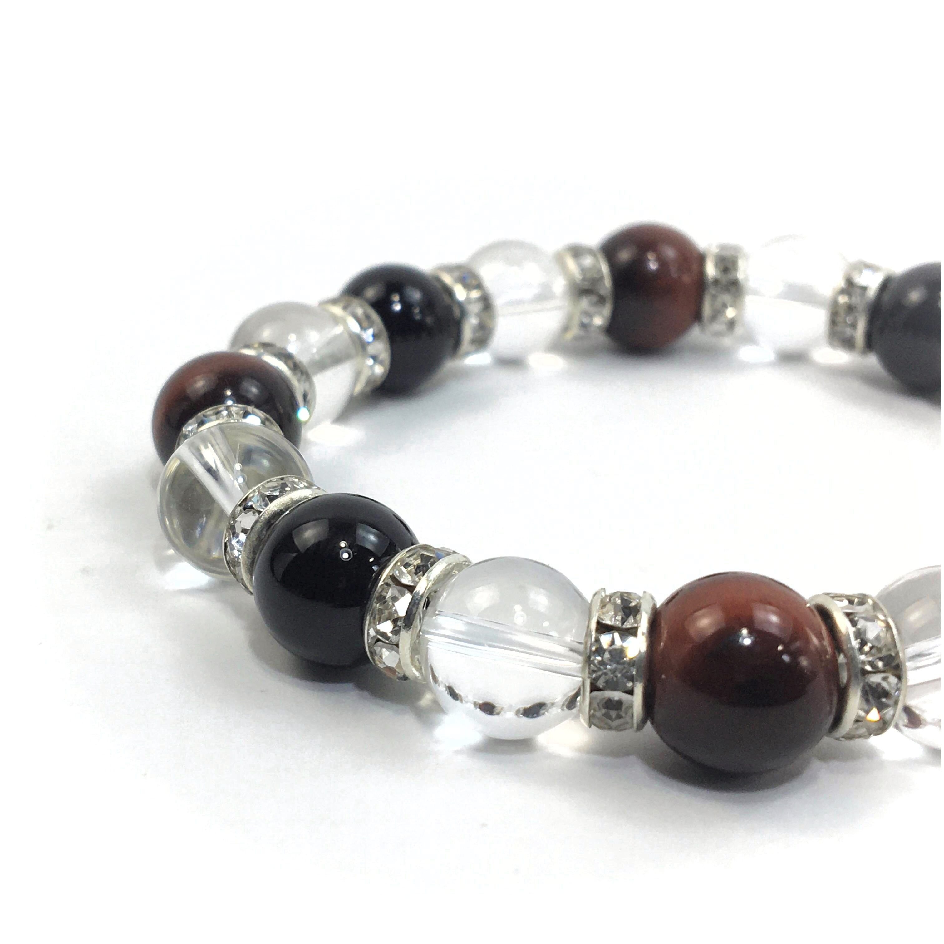 レッドタイガーアイ×水晶×オニキス パワーストーン ブレスレット 10mm(シルバー)メンズ・レディース 男性・女性 数珠ブレス 開運