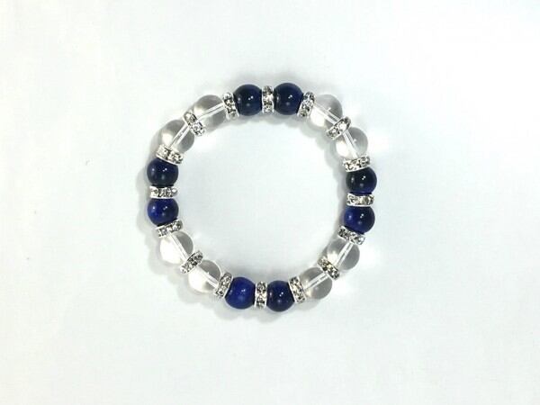 こちらは、ブルータイガーアイと水晶を組み合わせたブレスレットです。間にはロンデルを挟み高級感あるデザインに仕上がっています。石大きさは腕にも馴染みやすいように10mm玉で内周約16cm(伸可能)です。数に限りがございますので気になる方はお早めにどうぞ。