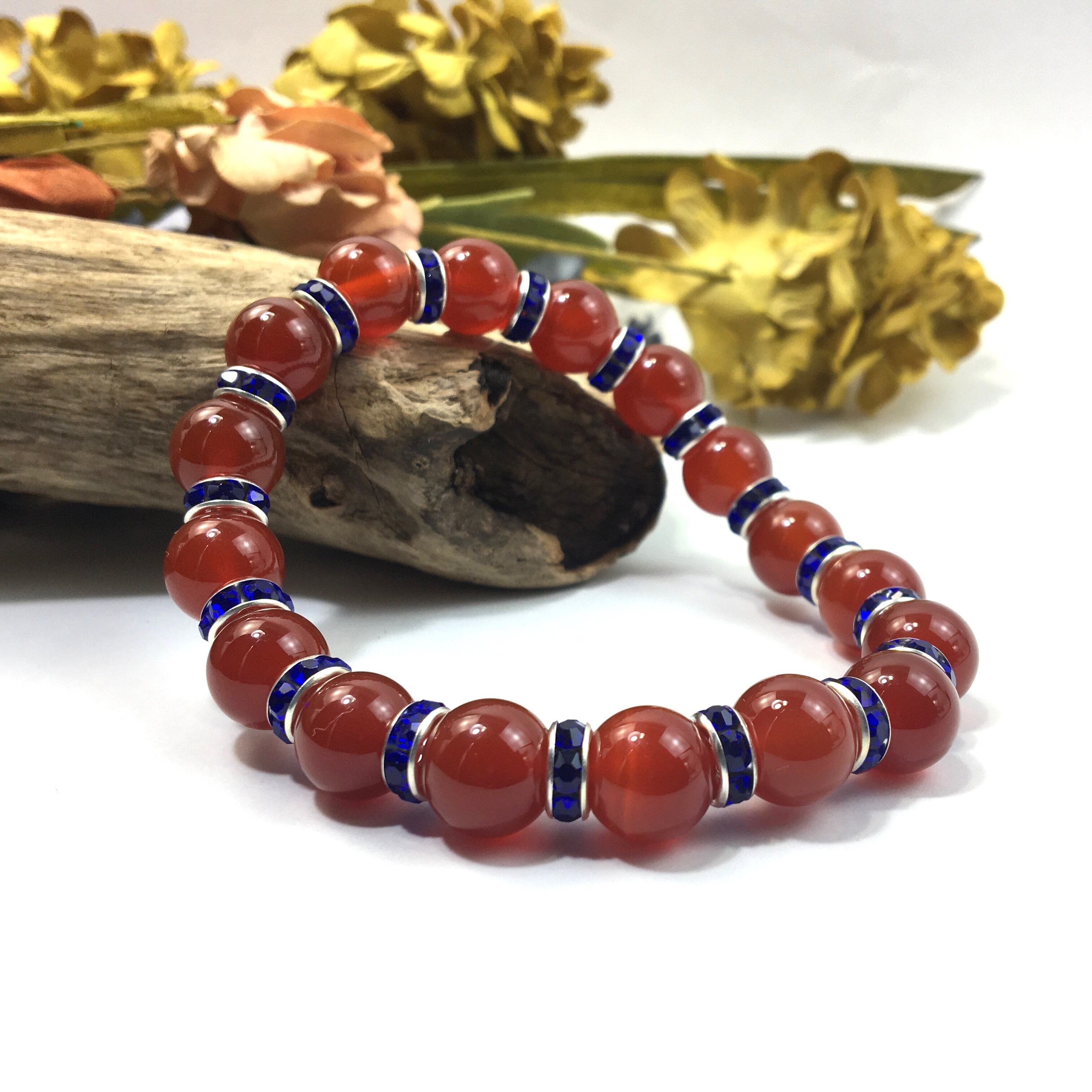 赤瑪瑙 パワーストーン ブレスレット 天然石 10mm (ダークブルー)メンズ・レディース 男性・女性 数珠ブレス 開運