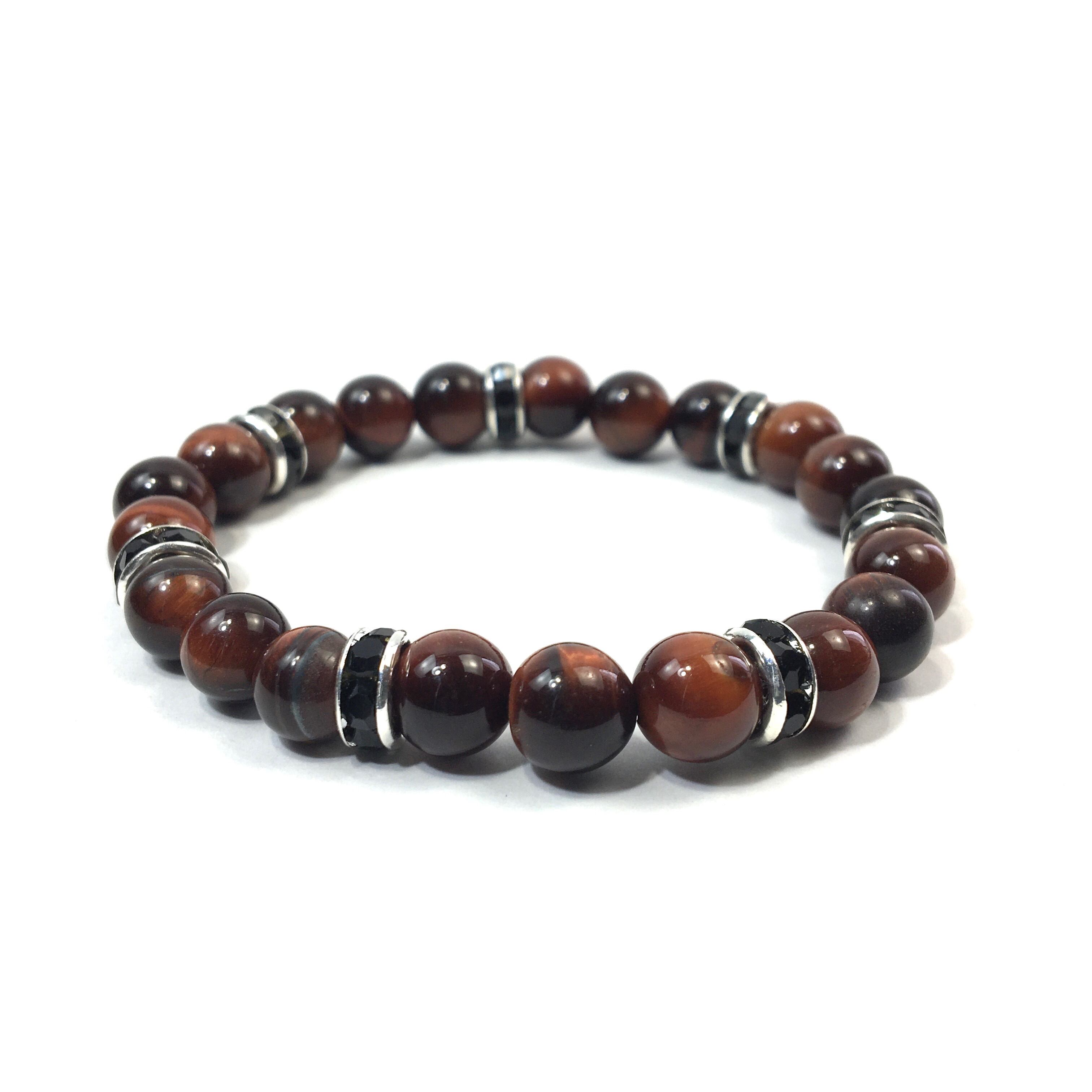 こちらは、8mm玉のレッドタイガーアイを使ったパワーストーンブレスレットです。シンプルなデザインでどんなコーディネートにも合わせやすいデザインに仕上げています。サイズは内周約15cmです。気になる方は是非この機会にどうぞ。