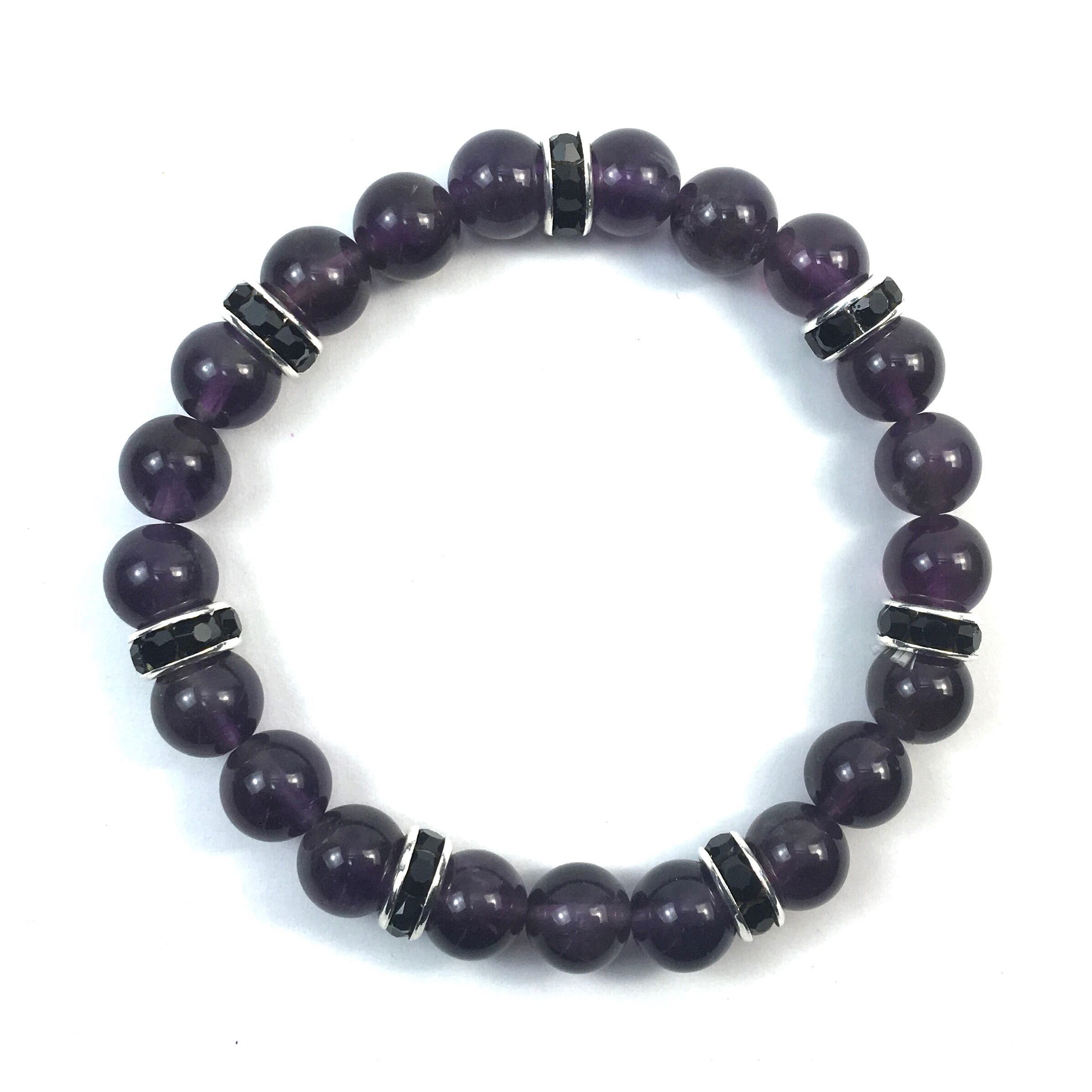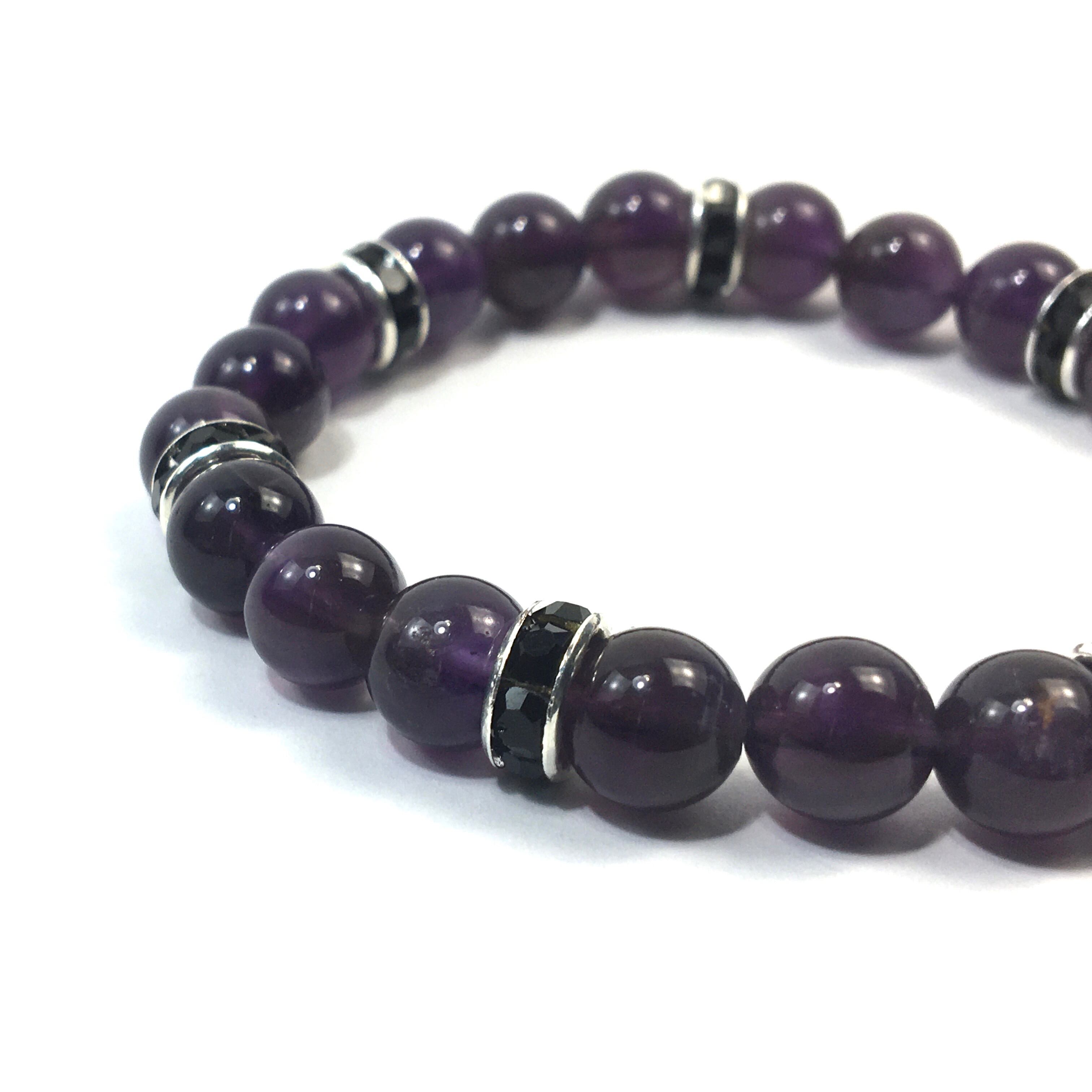 パワーストーン ブレスレット アメジスト 天然石ブレス (ブラック)レディース 女性 数珠ブレス 開運 プレゼント ギフト