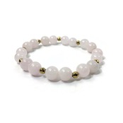 こちらは、8mm玉のローズクォーツを使ったパワーストーンブレスレットです。今回は石との間にはゴールドのヘマタイトを加えアクセントとしております。シンプルなデザインでどんなコーディネートにも合わせやすいデザインに仕上げています。サイズは内周約15cmです。気になる方は是非この機会にどうぞ。
