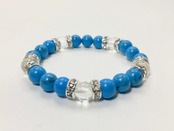 こちらは、8mm玉のターコイズと水晶を使ったパワーストーンブレスレットです。シンプルなデザインでどんなコーディネートにも合わせやすいデザインに仕上げています。サイズは内周約15cmです。気になる方は是非この機会にどうぞ。
