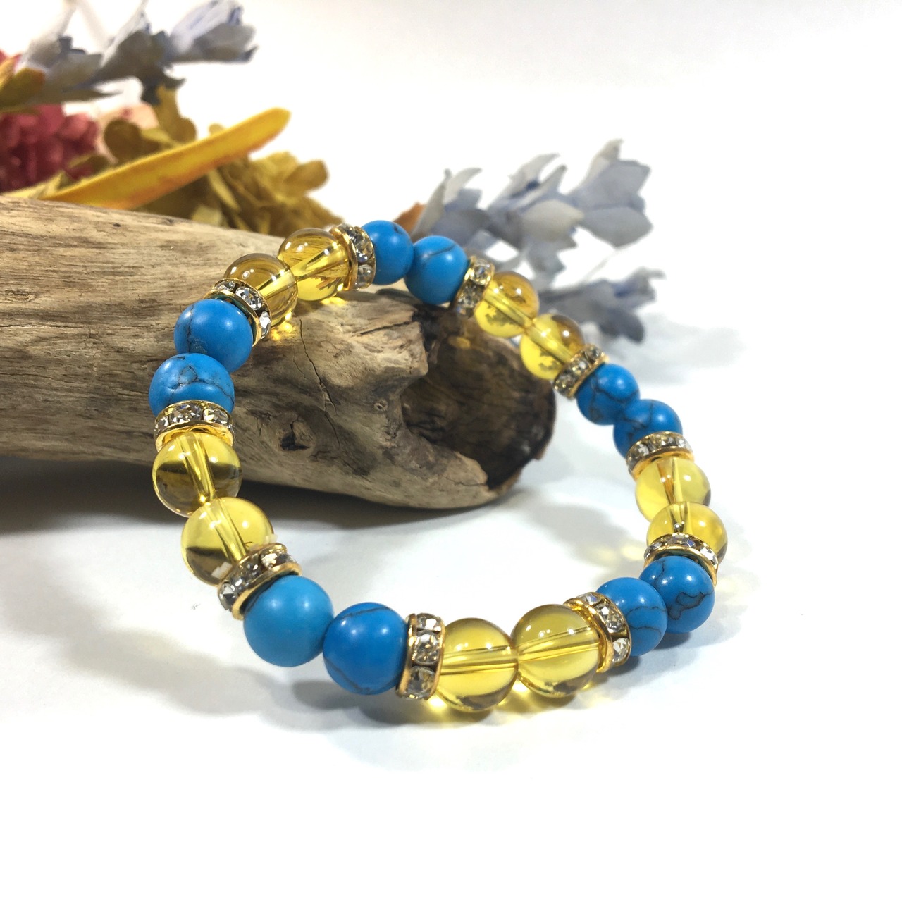 ターコイズ&シトリン パワーストーン ブレスレット 8mm(ゴールド)レディース 女性 数珠ブレス 開運 プレゼント ギフト