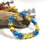 こちらは、8mm玉のターコイズとシトリンを使ったパワーストーンブレスレットです。シンプルなデザインでどんなコーディネートにも合わせやすいデザインに仕上げています。サイズは内周約15cmです。気になる方は是非この機会にどうぞ。