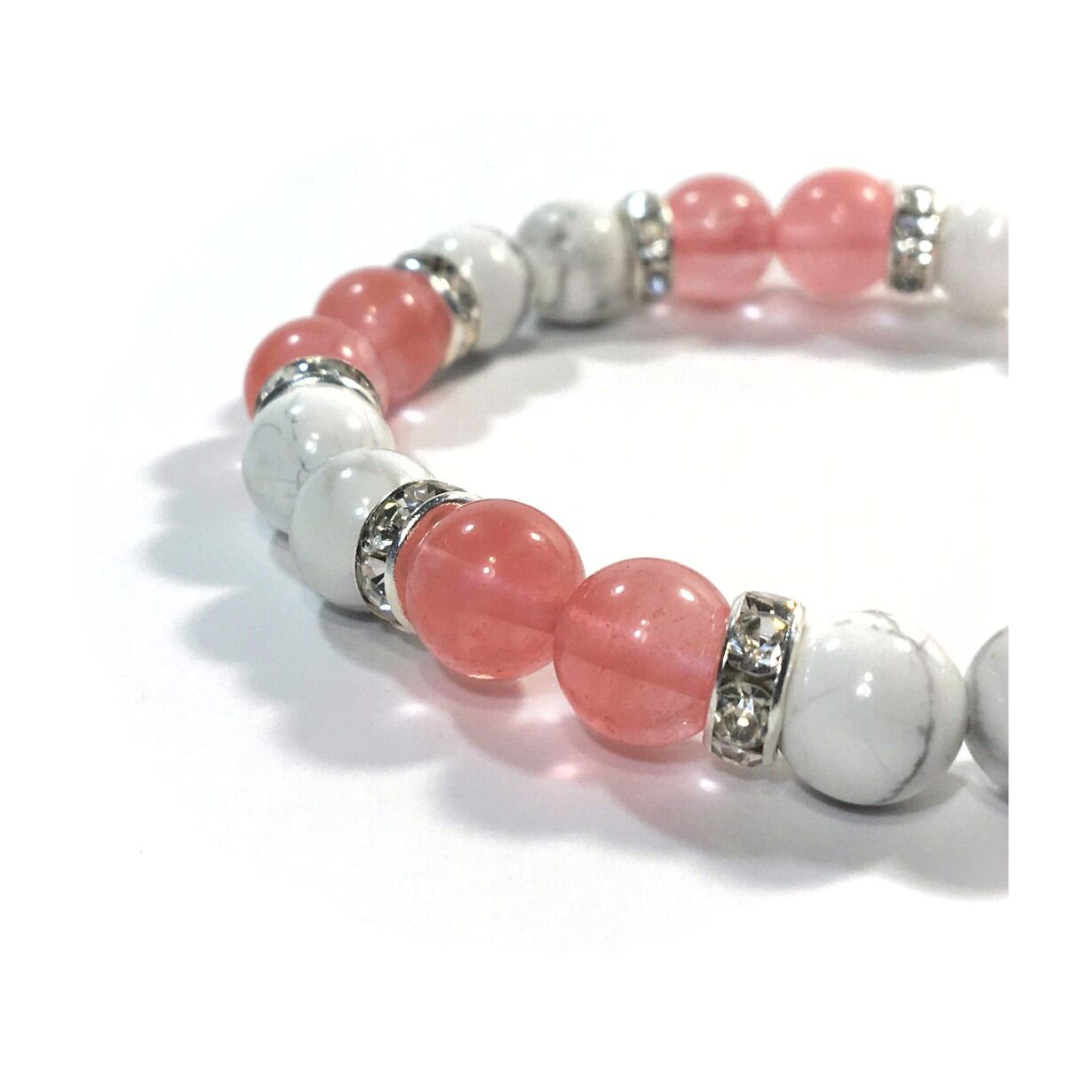 ハウライト&チェリークォーツ パワーストーン ブレスレット 8mm(シルバー)レディース 女性 数珠ブレス 開運 プレゼント ギフト