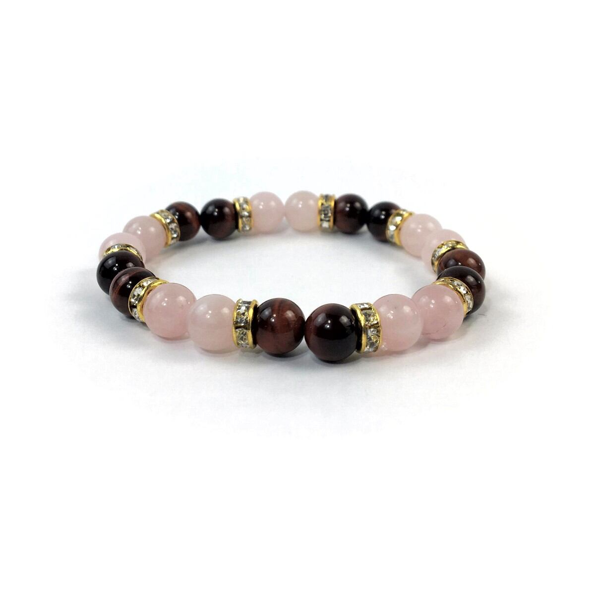 ローズクォーツ&レッドタイガーアイ パワーストーン ブレスレット 天然石 8mm(ゴールド)レディース 女性 数珠ブレス 開運 プレゼント ギフト