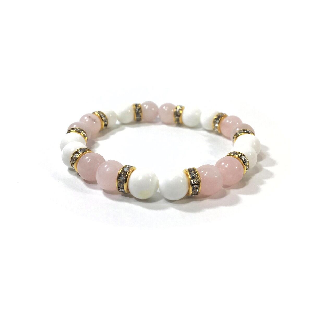 ローズクォーツ&ホワイトオニキス パワーストーン ブレスレット 天然石 8mm(ゴールド)レディース 女性 数珠ブレス 開運 プレゼント ギフト