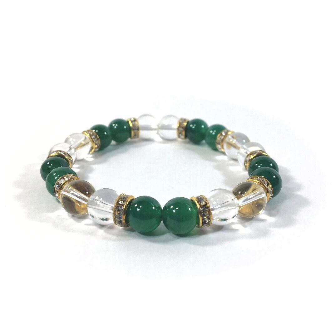 水晶&緑瑪瑙 パワーストーン ブレスレット 天然石ブレスレット 8mm(ゴールド)レディース 女性 数珠ブレス 開運 プレゼント ギフト