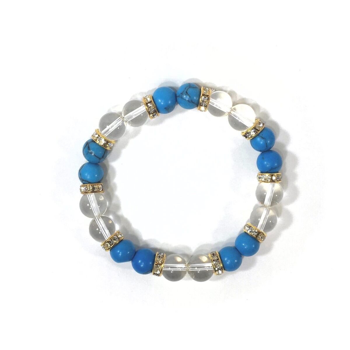 水晶&ターコイズ パワーストーン ブレスレット 8mm(ゴールド)レディース 女性 数珠ブレス 開運 プレゼント ギフト #1