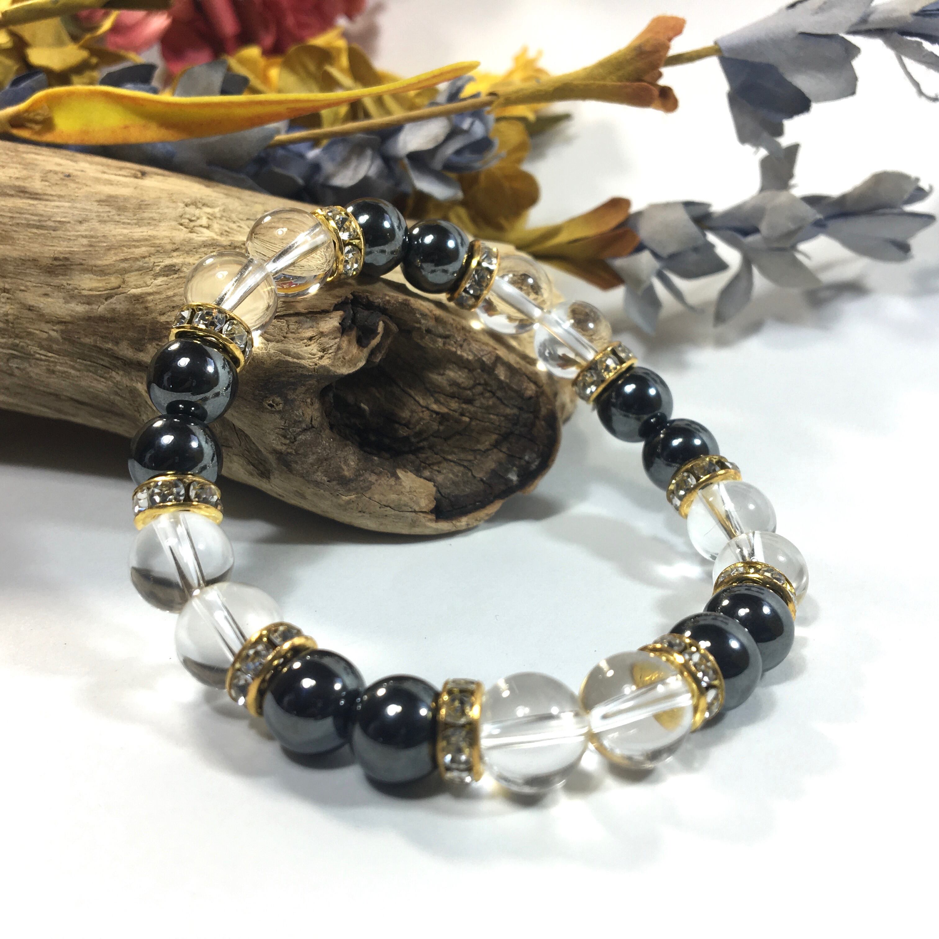 水晶&ヘマタイト パワーストーン ブレスレット 天然石 8mm(ゴールド)レディース 女性 数珠ブレス 開運 プレゼント ギフト