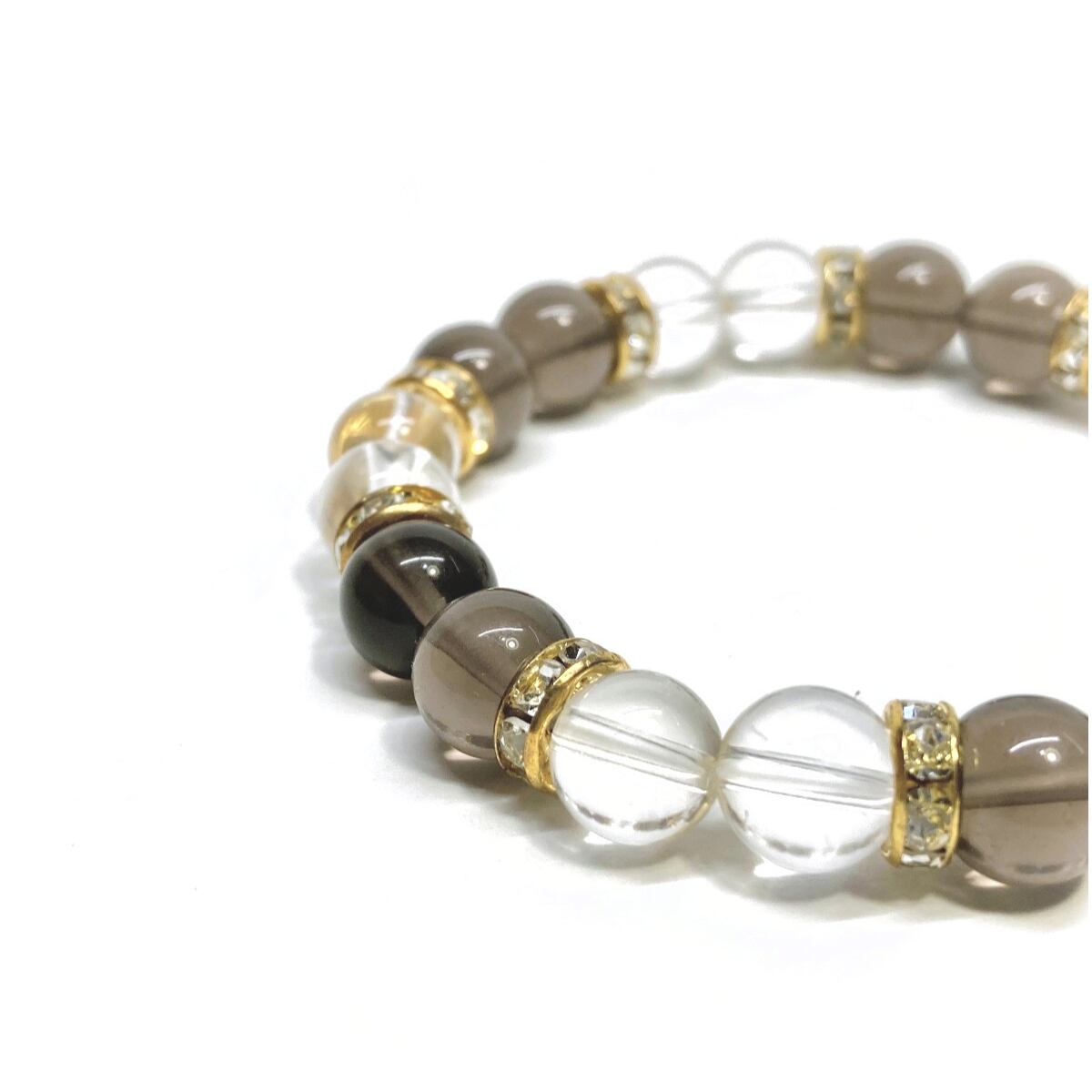 スモーキークォーツ&水晶 パワーストーン ブレスレット 天然石ブレス (ゴールド) 8mm レディース 女性 数珠ブレス 開運 プレゼント ギフト
