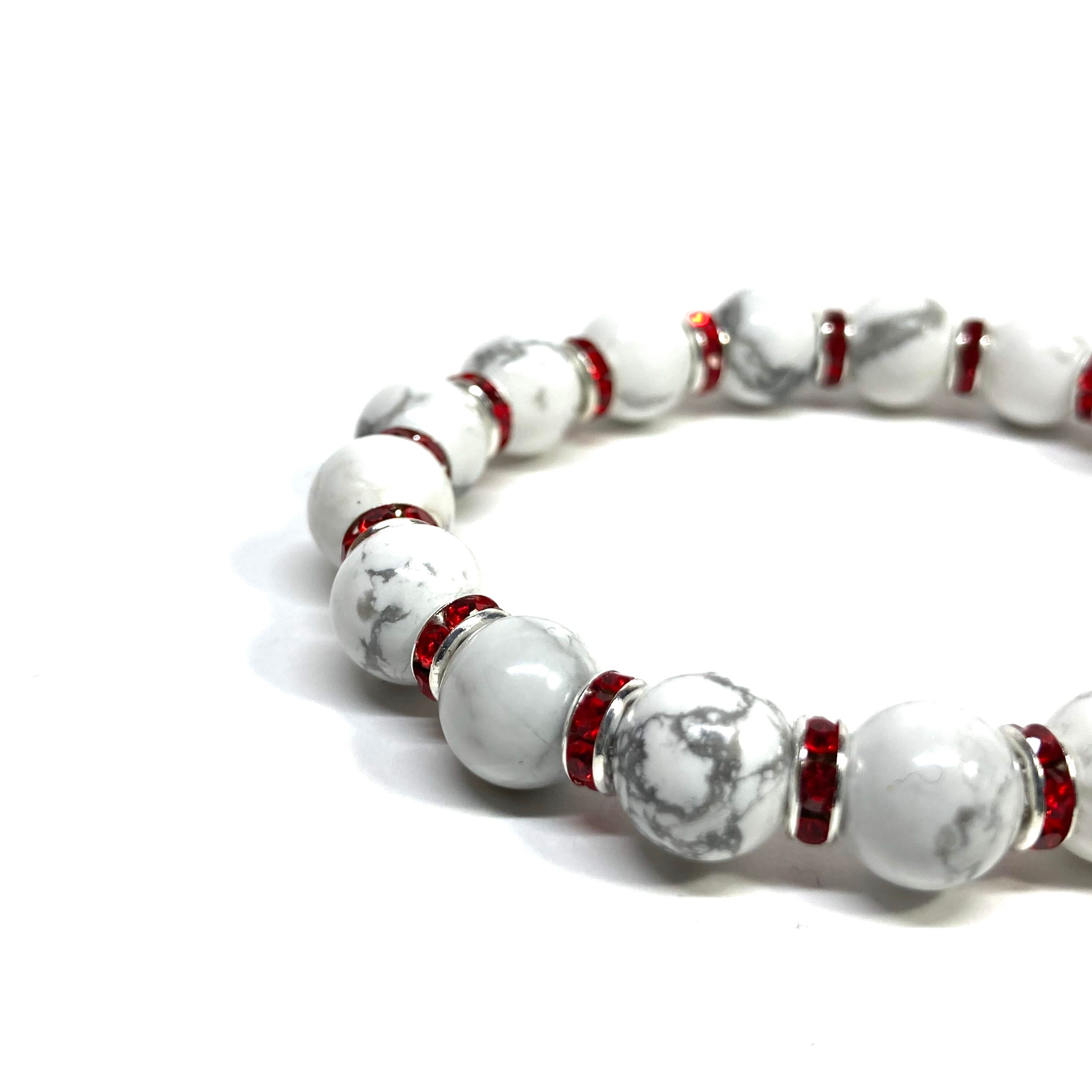 ハウライト パワーストーン ブレスレット 8mm 天然石(レッド)メンズ・レディース 男性・女性 数珠ブレス 開運
