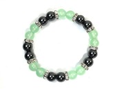 こちらは、8mm玉のジェイド(ライトグリーン)とヘマタイトを使用したパワーストーンブレスレットです。間にはロンデルを挟み高級感ある大人っぽいデザインに仕上がっています。サイズは内周約15cmです。気になる方は是非この機会にどうぞ。