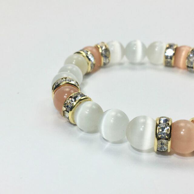 キャッツアイ(オレンジ×ホワイト) ブレスレット パワーストーン  (ゴールド)