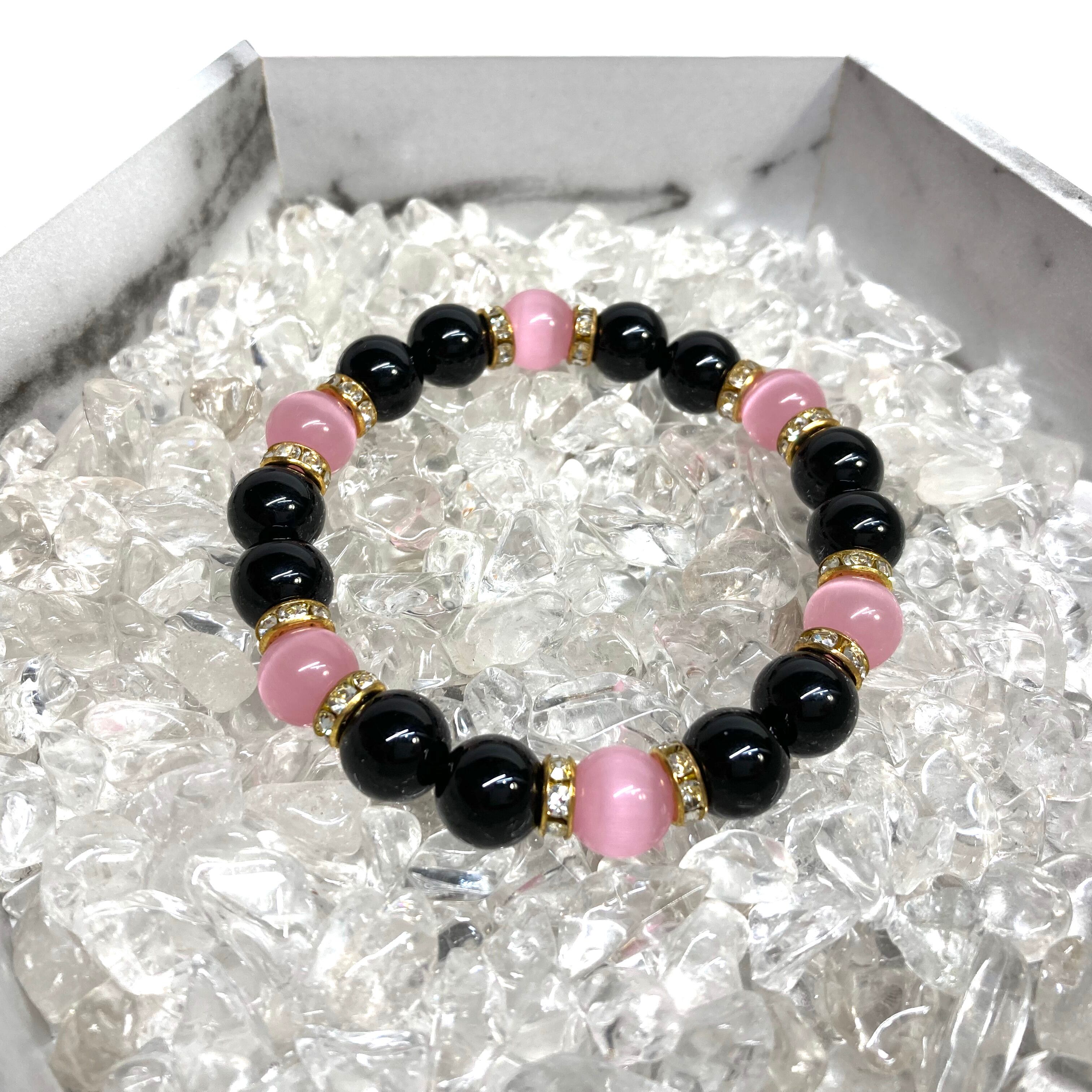 キャッツアイ(ピンク) オニキス パワーストーン ブレスレット (ゴールド) メンズ・レディース 男性・女性 数珠ブレス 開運