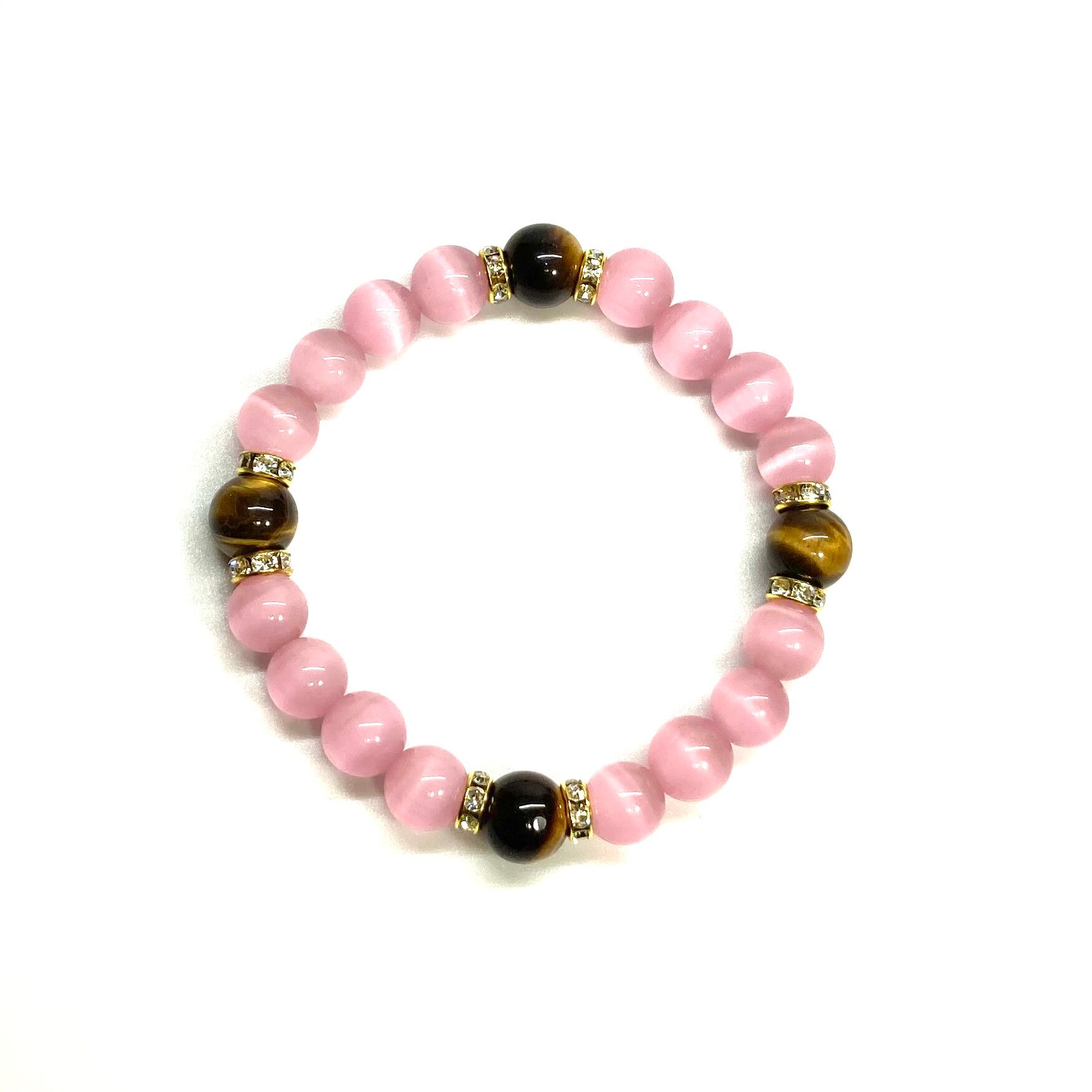 キャッツアイ(ピンク)×タイガーアイ パワーストーン ブレスレット (ゴールド) メンズ・レディース 男性・女性 数珠ブレス 開運