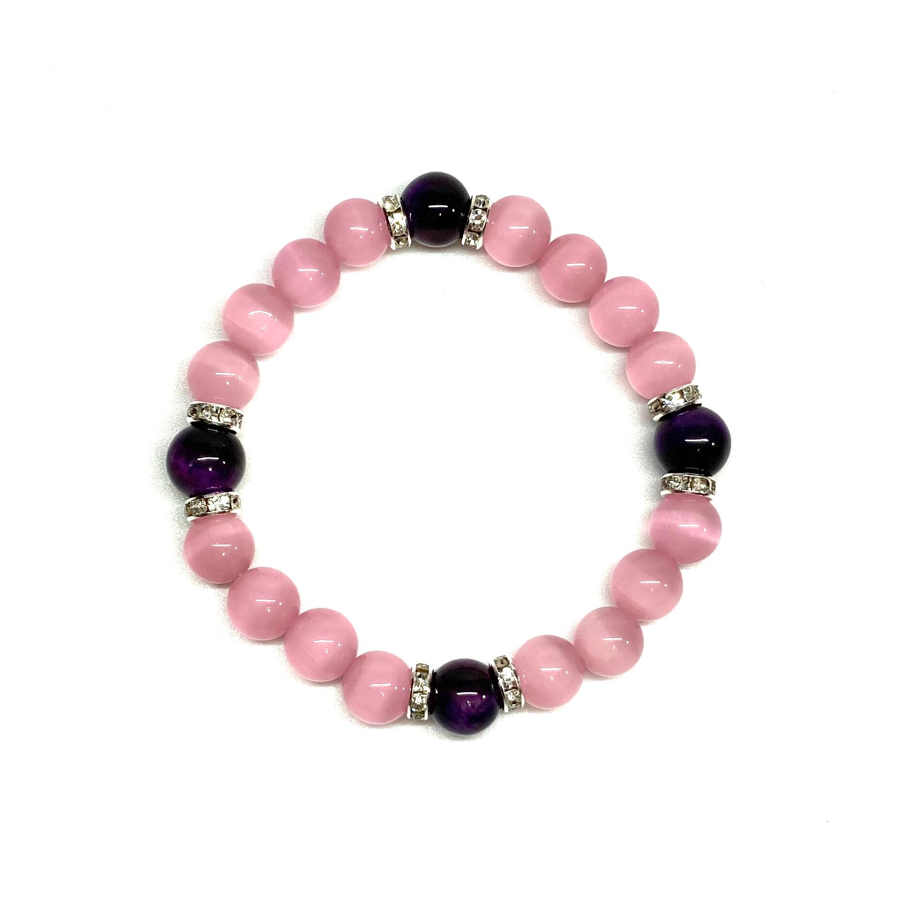 キャッツアイ(ピンク)×パープルタイガーアイ パワーストーン ブレスレット (シルバー) メンズ・レディース 男性・女性 数珠ブレス 開運
