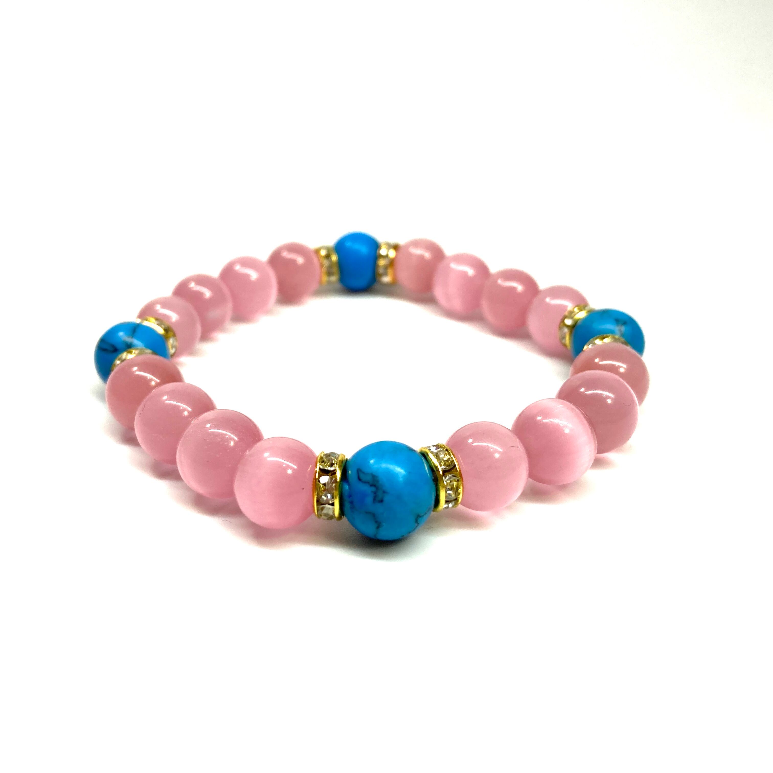 キャッツアイ(ピンク)×ターコイズ パワーストーン ブレスレット (ゴールド) メンズ・レディース 男性・女性 数珠ブレス 開運 #1