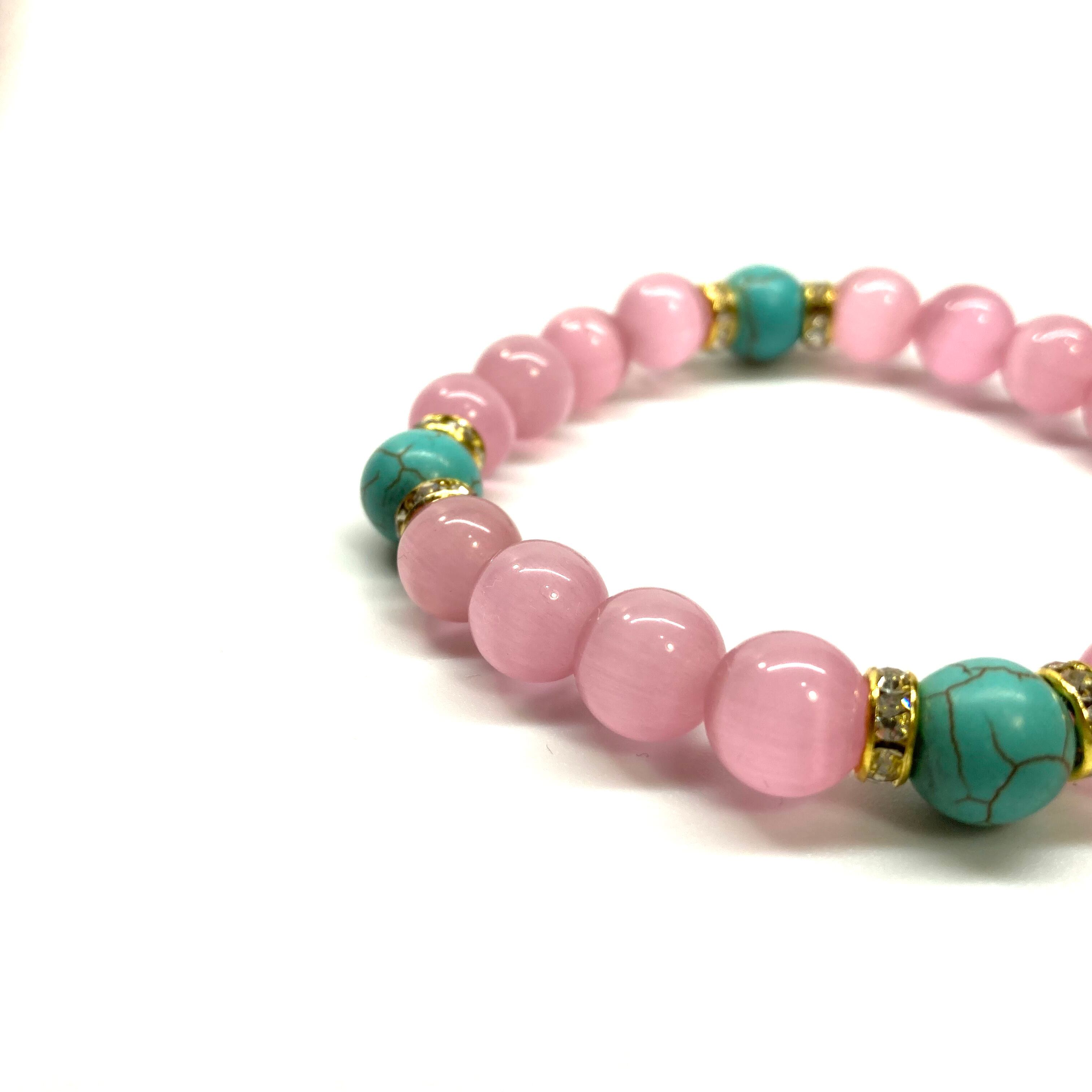 キャッツアイ(ピンク)×ターコイズ パワーストーン ブレスレット (ゴールド) メンズ・レディース 男性・女性 数珠ブレス 開運 #2