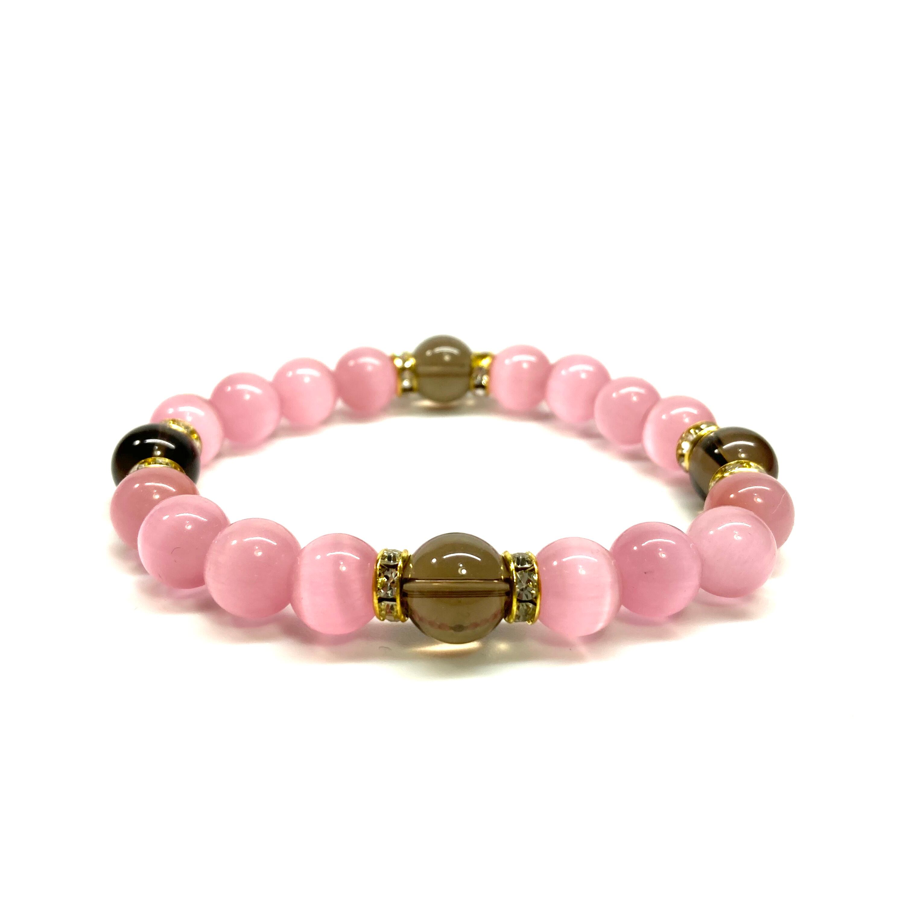 キャッツアイ(ピンク)×スモーキークォーツ パワーストーン ブレスレット (ゴールド) メンズ・レディース 男性・女性 数珠ブレス 開運
