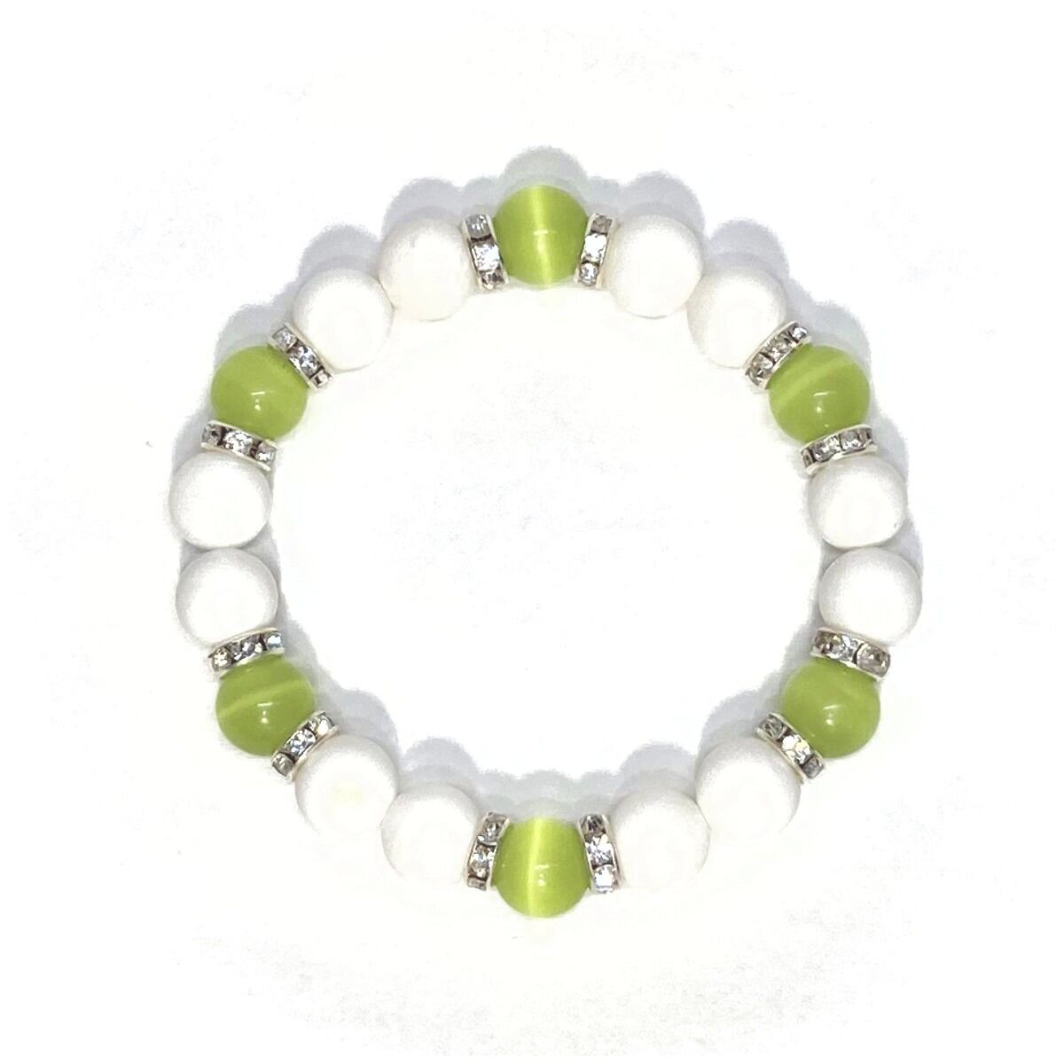 キャッツアイ(ライムグリーン) ホワイトオニキス パワーストーン ブレス (シルバー) メンズ・レディース 男性・女性 数珠ブレス 開運