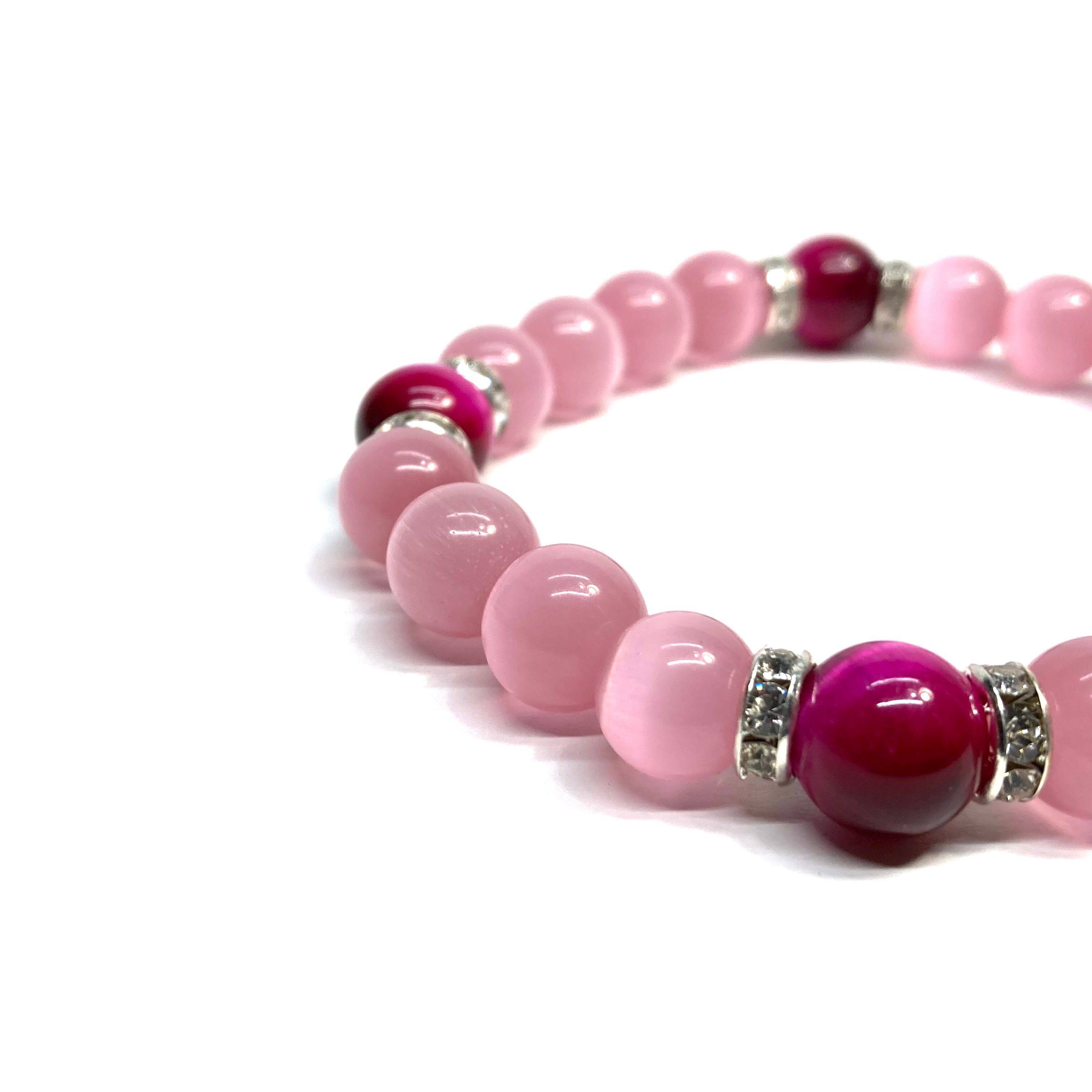 キャッツアイ(ピンク)×ピンクタイガーアイ パワーストーン ブレスレット (シルバー) メンズ・レディース 男性・女性 数珠ブレス 開運