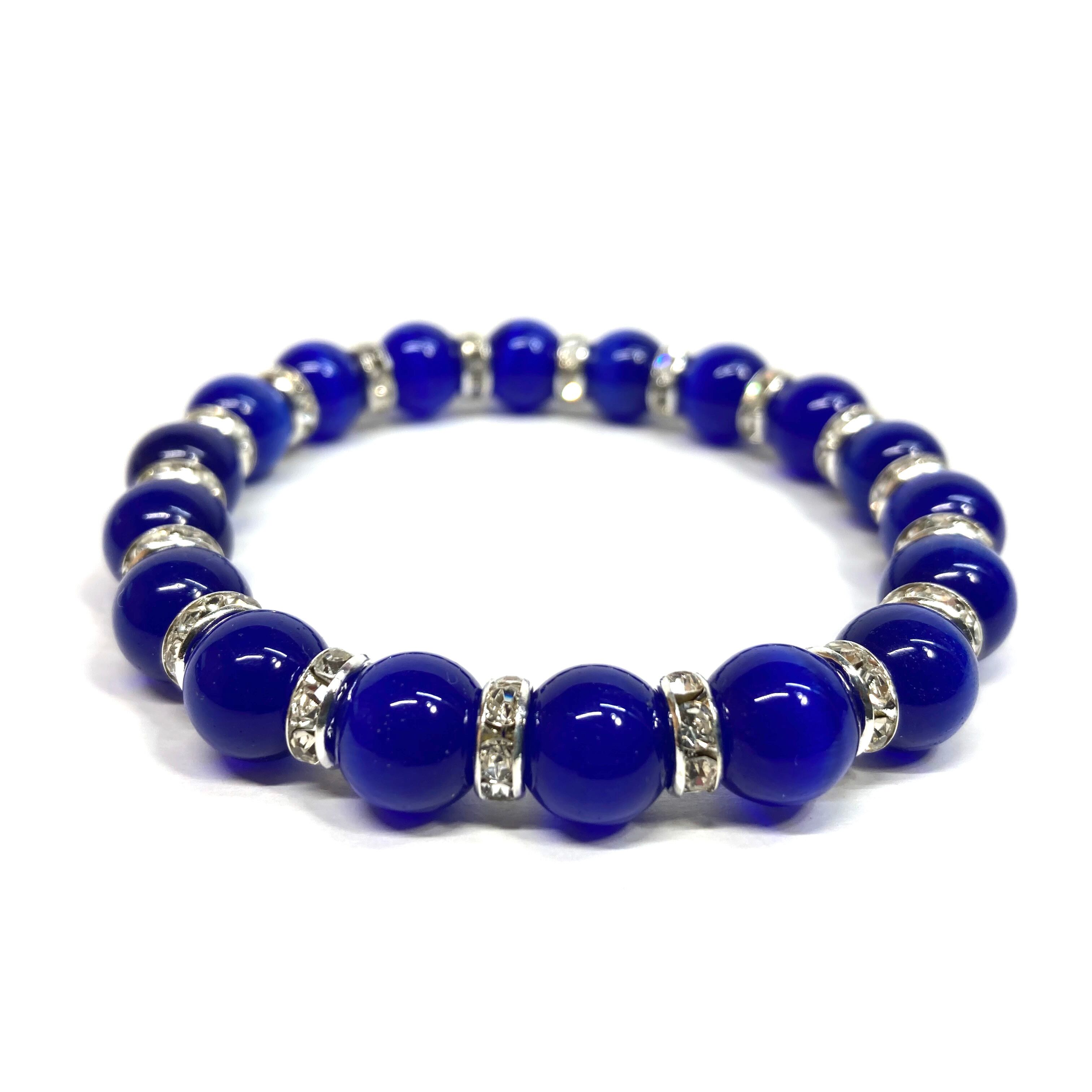 キャッツアイ(ダークブルー) パワーストーン ブレスレット (シルバー) メンズ・レディース 男性・女性 数珠ブレス 開運