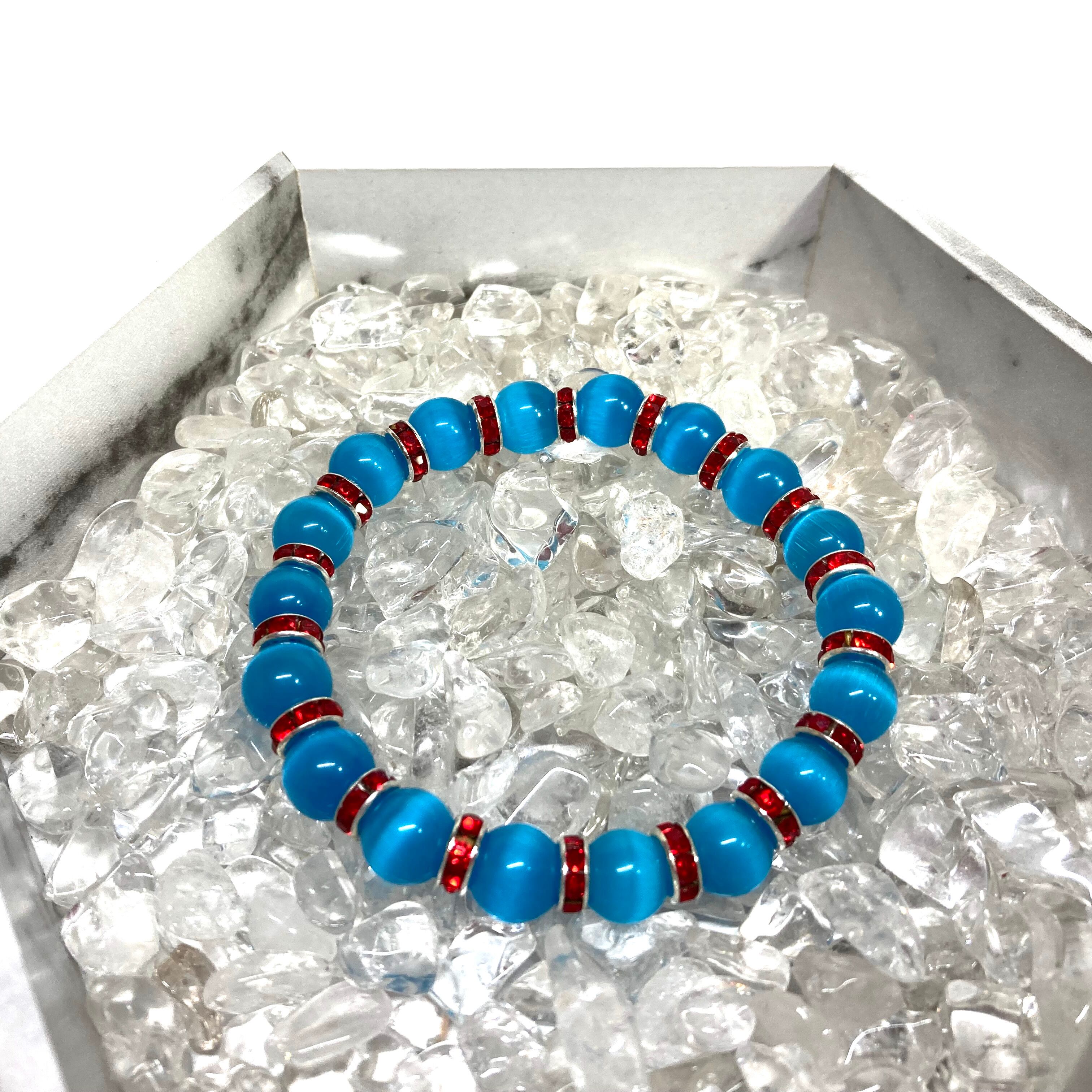 キャッツアイ(ライトブルー) パワーストーン ブレスレット (レッド) メンズ・レディース 男性・女性 数珠ブレス 開運