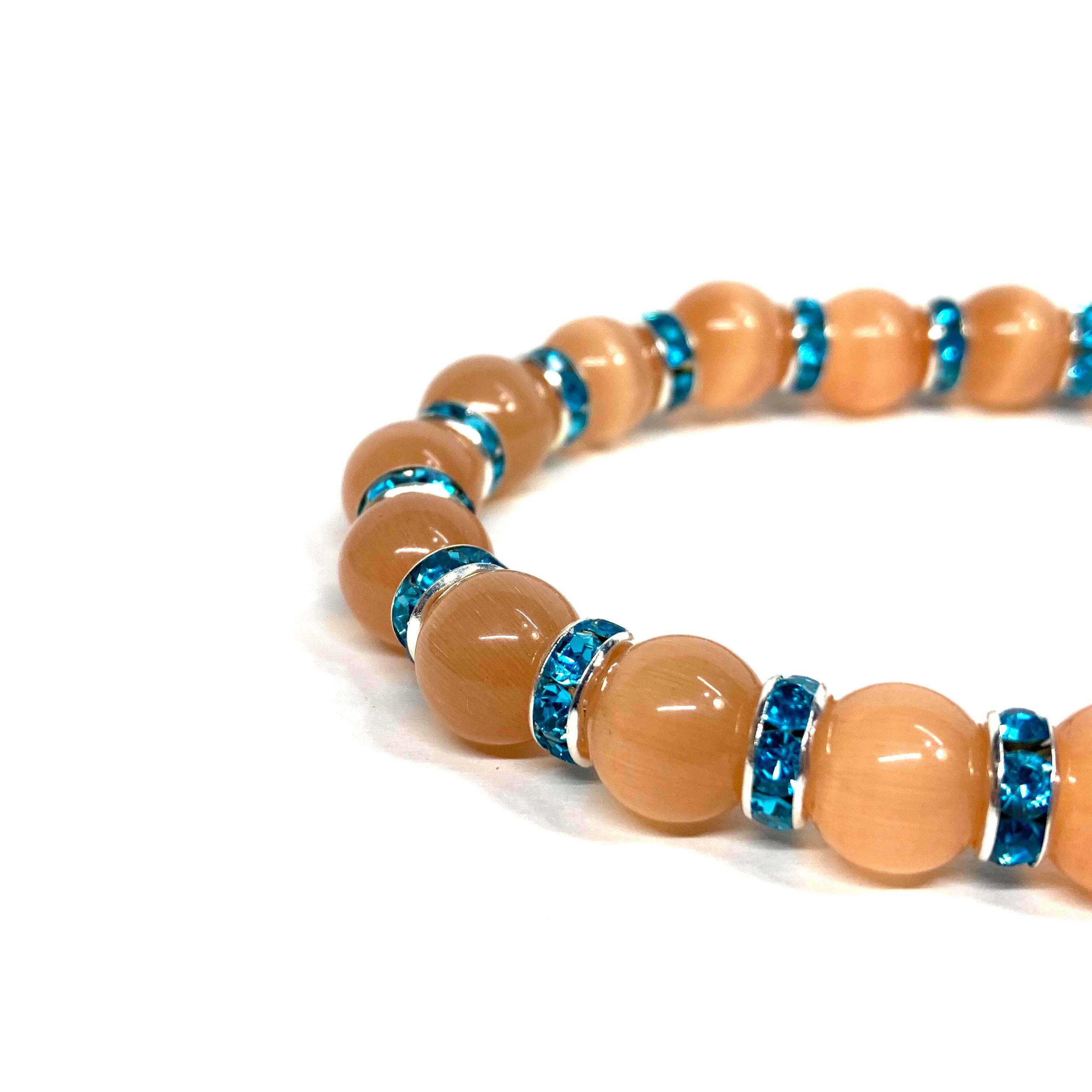 キャッツアイ(オレンジ) パワーストーン ブレスレット (ライトブルー) メンズ・レディース 男性・女性 数珠ブレス 開運