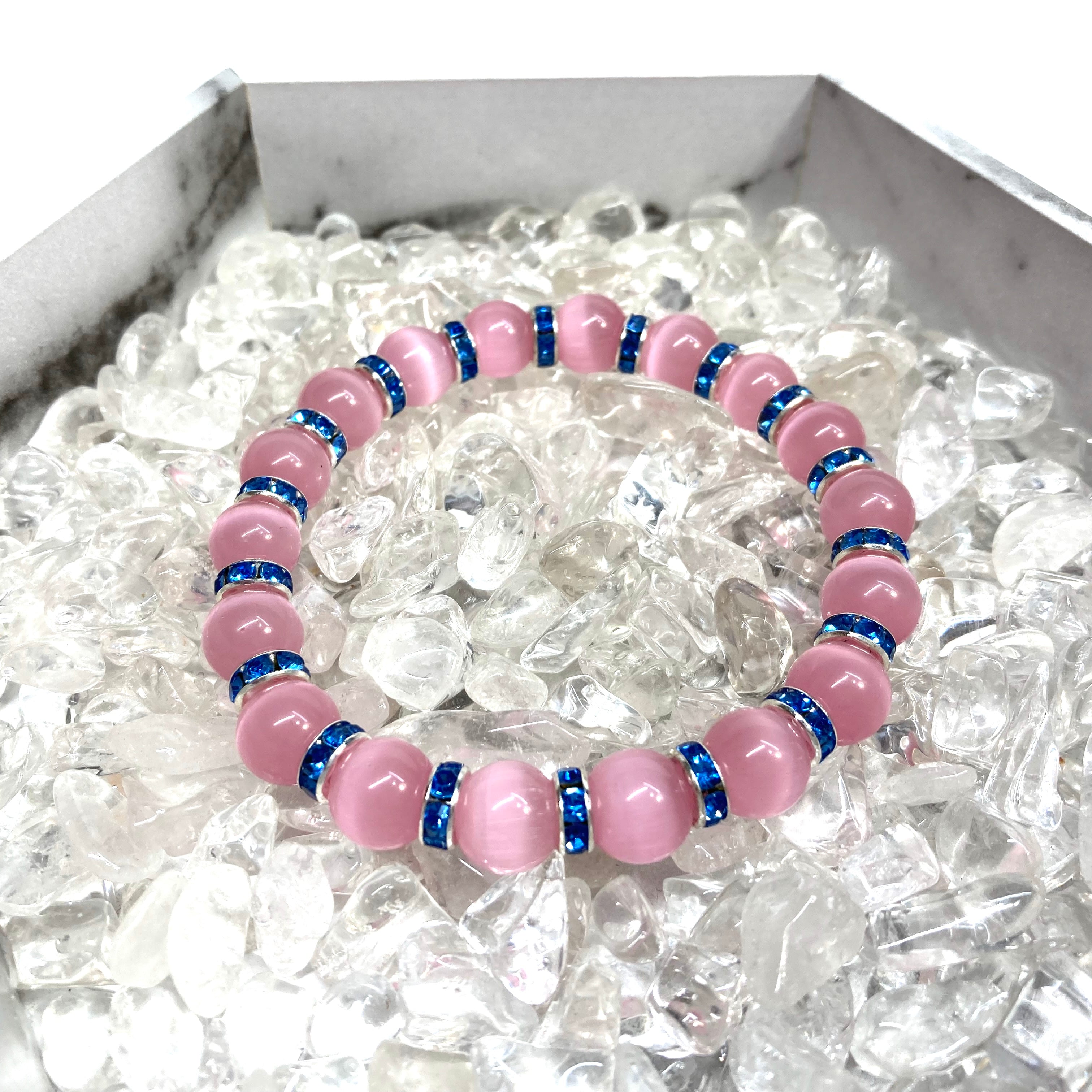 キャッツアイ(ピンク) パワーストーン ブレスレット (ブルー) メンズ・レディース 男性・女性 数珠ブレス 開運