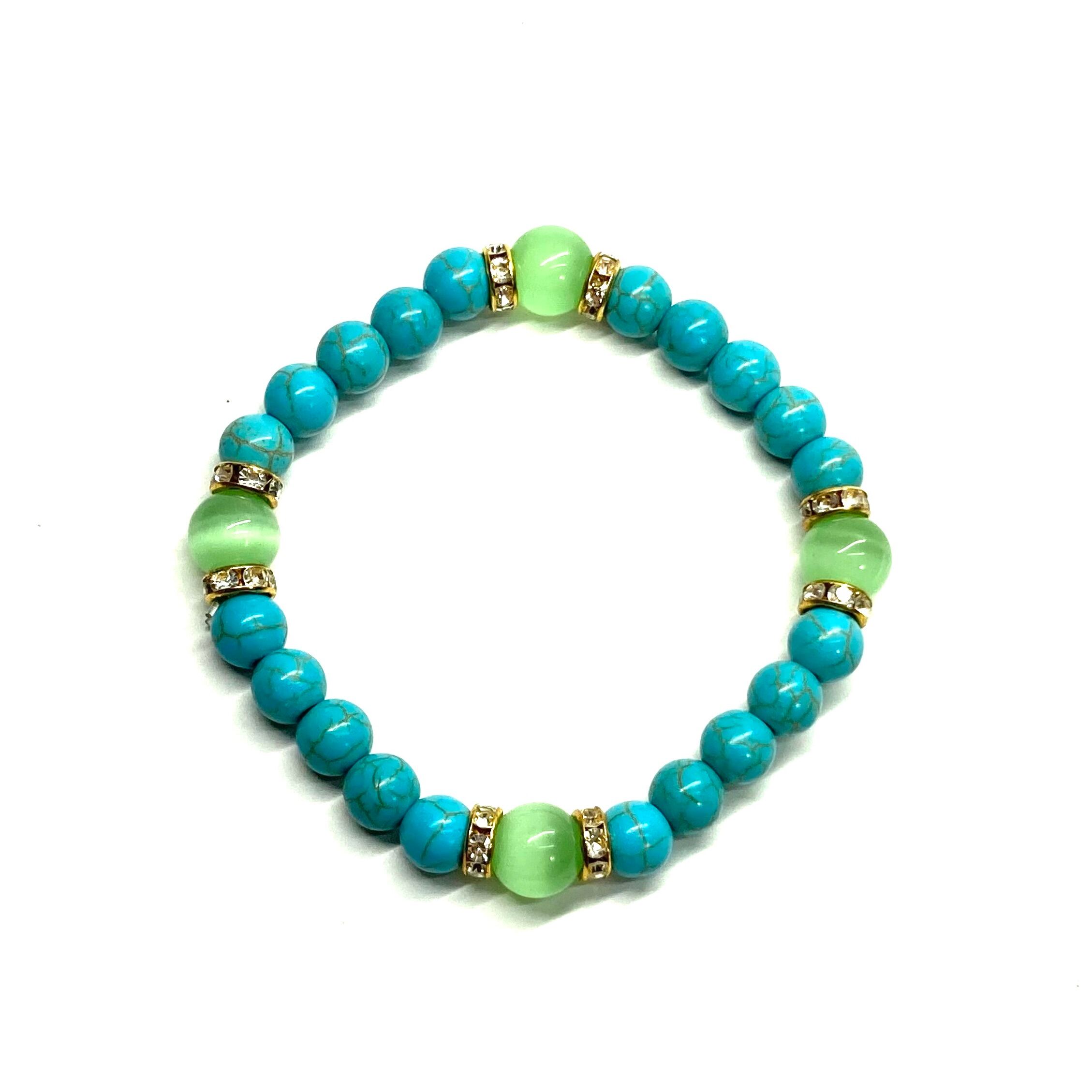 ターコイズ&キャッツアイ(ライトグリーン) パワーストーン ブレスレット (ゴールド)メンズ レディース ハンドメイト
