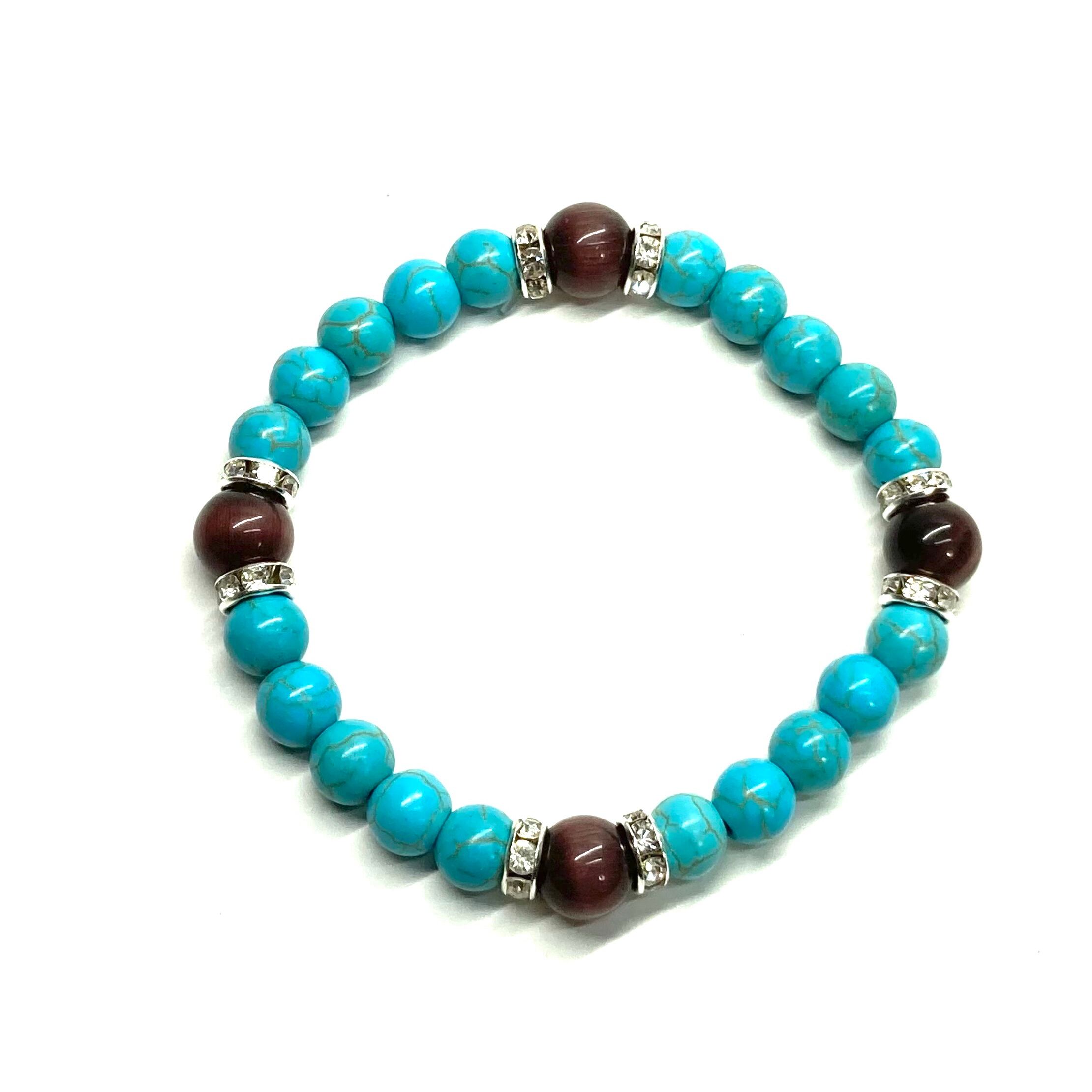 こちらは、8mm玉のキャッツアイとターコイズを使用したパワーストーンブレスレットです。間にはロンデルを挟み高級感ある大人っぽいデザインに仕上がっています。内周約17cmです。気になる方は是非この機会にどうぞ。 【ブレスレット内周サイズ】 内周約17cm 【使用している石、サイズ】 ターコイズ(8mm)・キャッツアイ(10mm) 石は全て浄化済みのものを使っています。