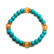 ターコイズ&キャッツアイ(オレンジ) パワーストーン ブレスレット (ゴールド)メンズ レディース ハンドメイト