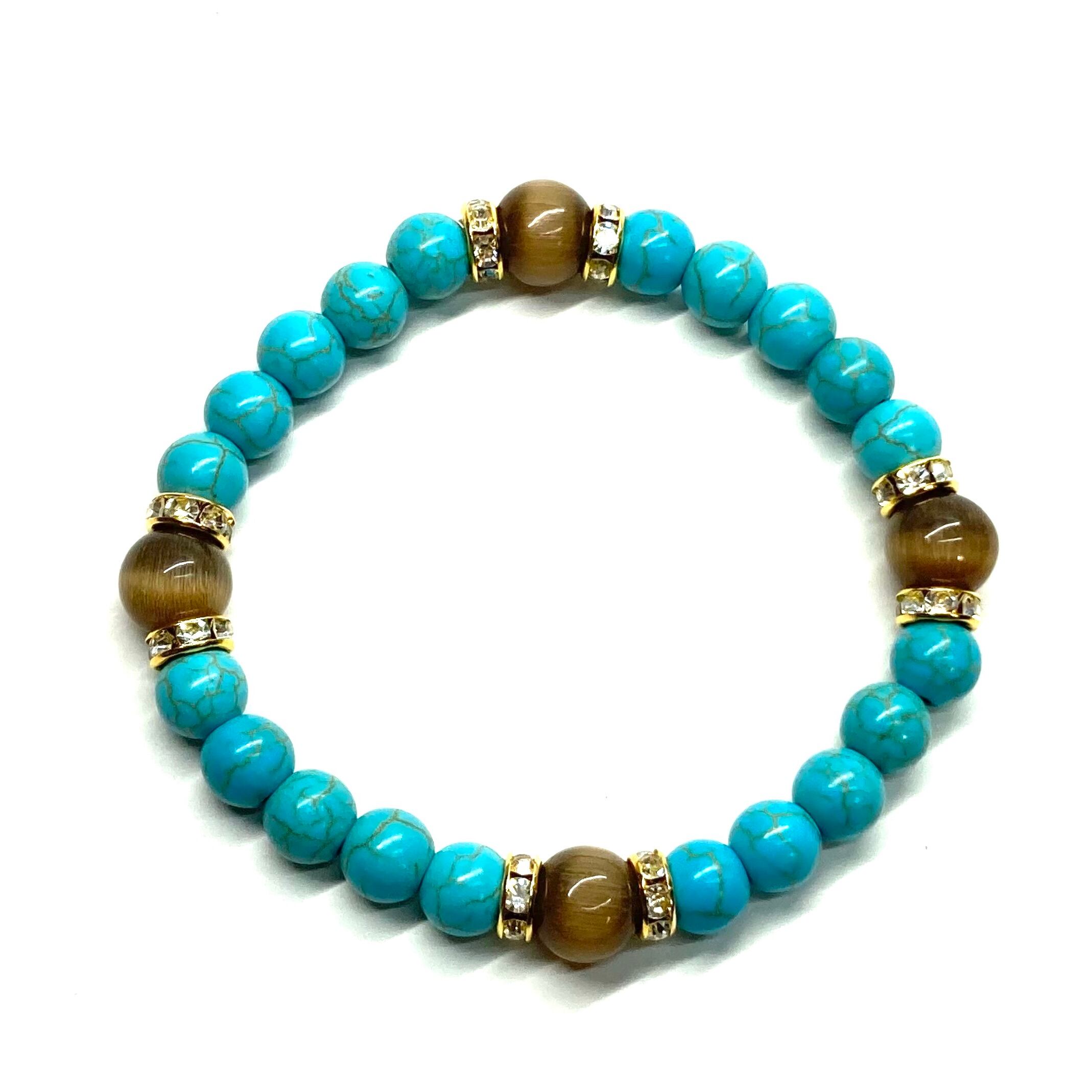 ターコイズ&キャッツアイ(ブラウン) パワーストーン ブレスレット (ゴールド)メンズ レディース ハンドメイト