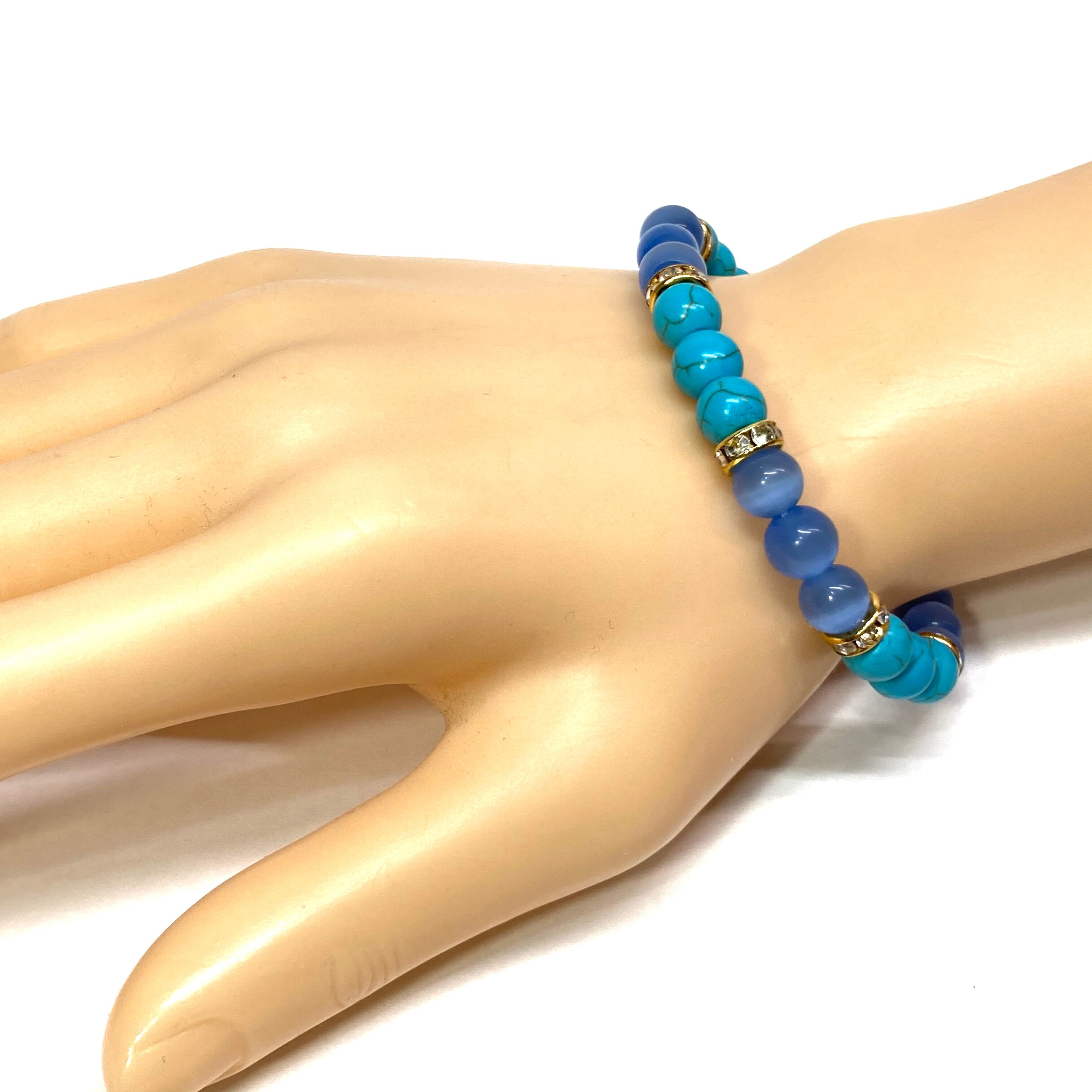 ターコイズ&キャッツアイ(ブルー) パワーストーン ブレスレット (ゴールド)メンズ レディース ハンドメイト