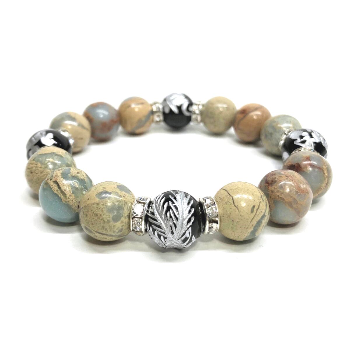 ご覧頂いているブレスレットは、四神獣銀彫オニキスとインプレッションストーンを組み合わせたブレスレット。守り神である四神とパワーストーンの組み合わせで運気の流れを引き寄せる強運ブレスレットです。シンプルなデザインで男女問わず、年齢問わずご使用頂けるデザインなっております。シンプルなデザインは日常のアクセントとして、仕事やビジネスカジュアル、パーティーや特別なイベントなど様々なシーン活用できます。また、ちょっと贈り物にも最適なブレスレットになっております。四神獣を身につけて厄災から身を守り、多くの運気を呼び込まれてください。