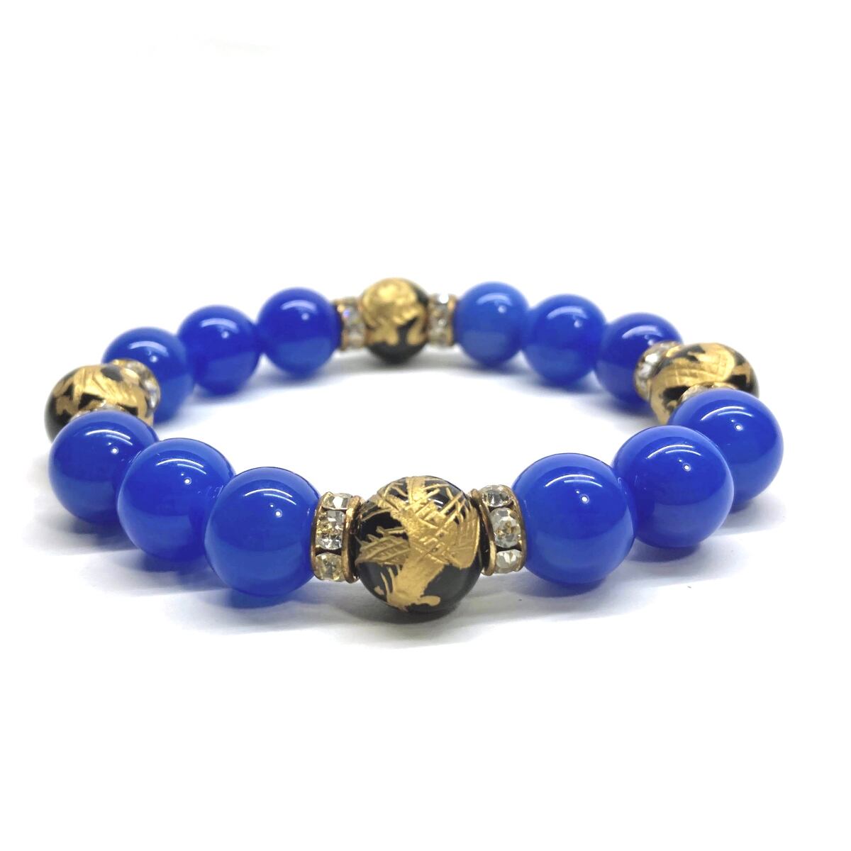 12mm 四神獣金彫オニキス×青瑪瑙 パワーストーン ブレスレット天然石 運気上昇 開運 金運 健康運 お守り 青龍 白虎 玄武 朱雀 (ゴールド)メンズ・レディース 男性・女性 数珠ブレス 開運