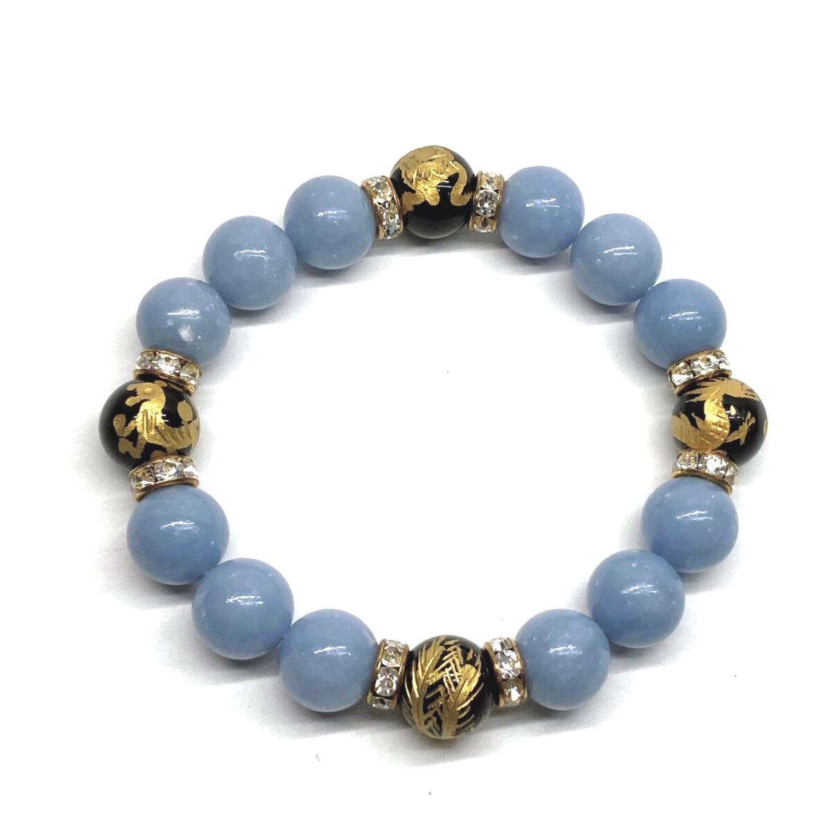 ご覧頂いているブレスレットは、四神獣金彫オニキスとエンジェライトを組み合わせたブレスレット。守り神である四神とパワーストーンの組み合わせで運気の流れを引き寄せる強運ブレスレットです。シンプルなデザインで男女問わず、年齢問わずご使用頂けるデザインなっております。シンプルなデザインは日常のアクセントとして、仕事やビジネスカジュアル、パーティーや特別なイベントなど様々なシーン活用できます。また、ちょっと贈り物にも最適なブレスレットになっております。四神獣を身につけて厄災から身を守り、多くの運気を呼び込まれてください。