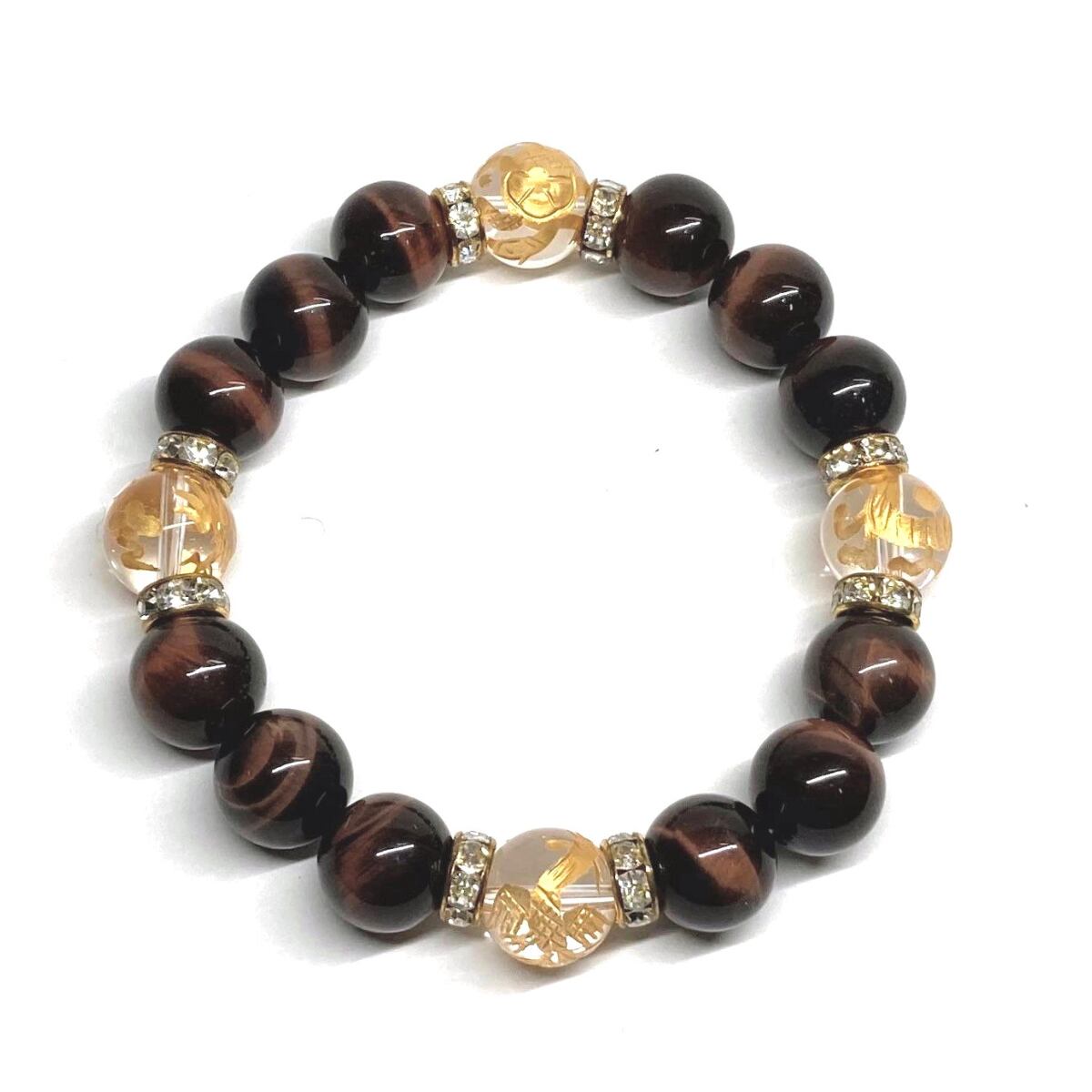 12mm 四神獣金彫水晶×レッドタイガーアイ パワーストーン ブレスレット天然石 開運 金運 ギャンブル運 お守り 青龍 白虎 玄武 朱雀 (ゴールド)メンズ・レディース 男性・女性 数珠ブレス 開運