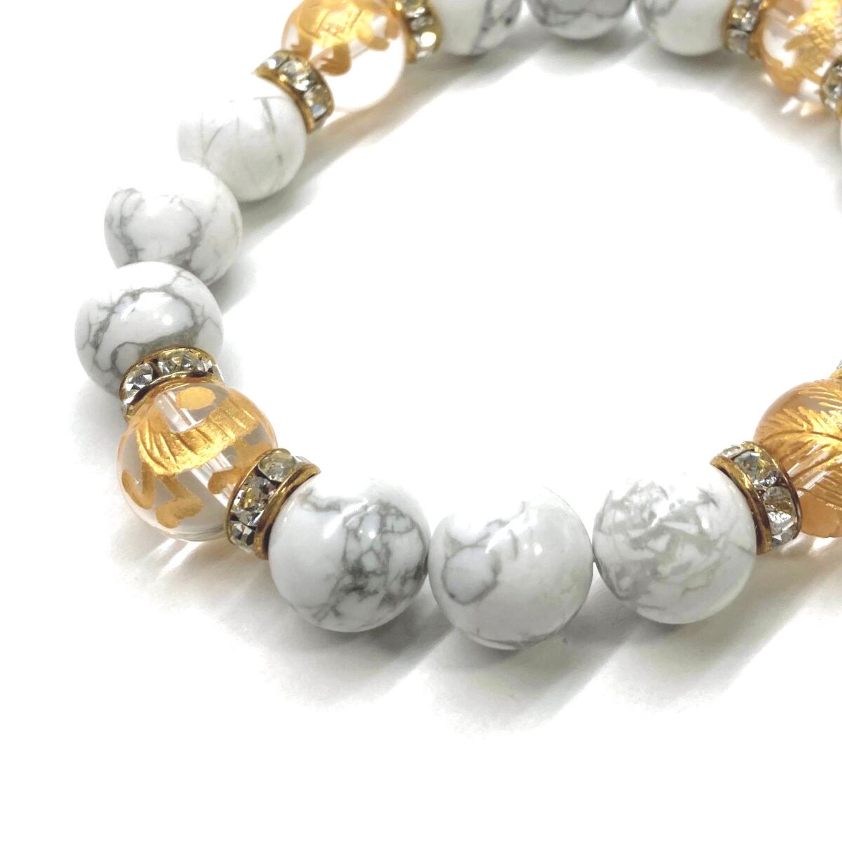 ご覧頂いているブレスレットは、四神獣金彫水晶とハウライトを組み合わせたブレスレット。守り神である四神とパワーストーンの組み合わせで運気の流れを引き寄せる強運ブレスレットです。シンプルなデザインで男女問わず、年齢問わずご使用頂けるデザインなっております。シンプルなデザインは日常のアクセントとして、仕事やビジネスカジュアル、パーティーや特別なイベントなど様々なシーン活用できます。また、ちょっと贈り物にも最適なブレスレットになっております。四神獣を身につけて厄災から身を守り、多くの運気を呼び込まれてください。