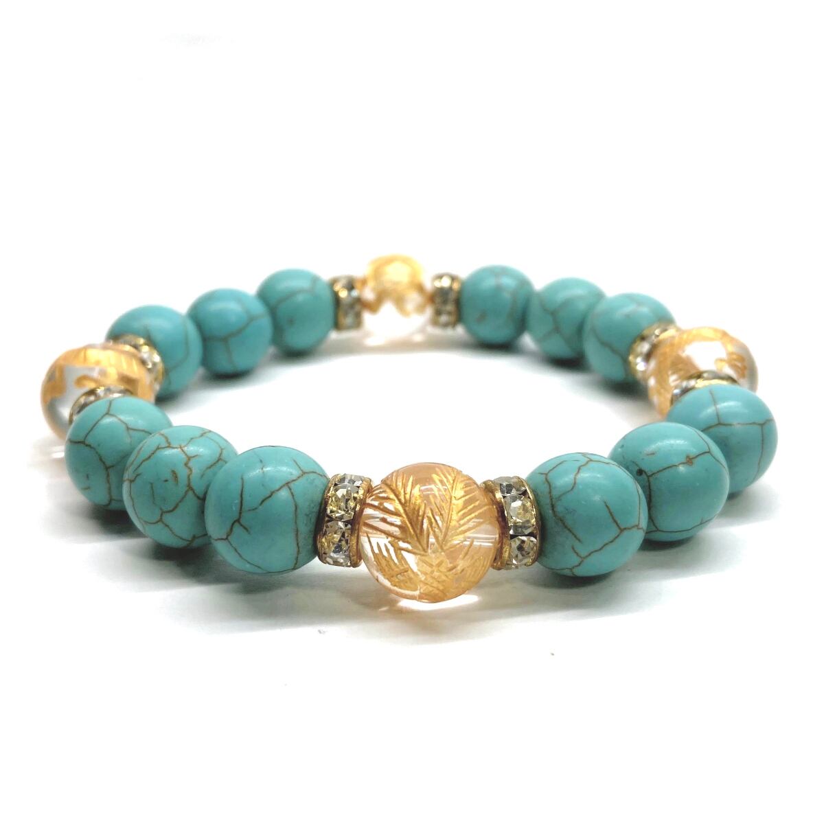 ご覧頂いているブレスレットは、四神獣金彫水晶とターコイズを組み合わせたブレスレット。守り神である四神とパワーストーンの組み合わせで運気の流れを引き寄せる強運ブレスレットです。シンプルなデザインで男女問わず、年齢問わずご使用頂けるデザインなっております。シンプルなデザインは日常のアクセントとして、仕事やビジネスカジュアル、パーティーや特別なイベントなど様々なシーン活用できます。また、ちょっと贈り物にも最適なブレスレットになっております。四神獣を身につけて厄災から身を守り、多くの運気を呼び込まれてください。