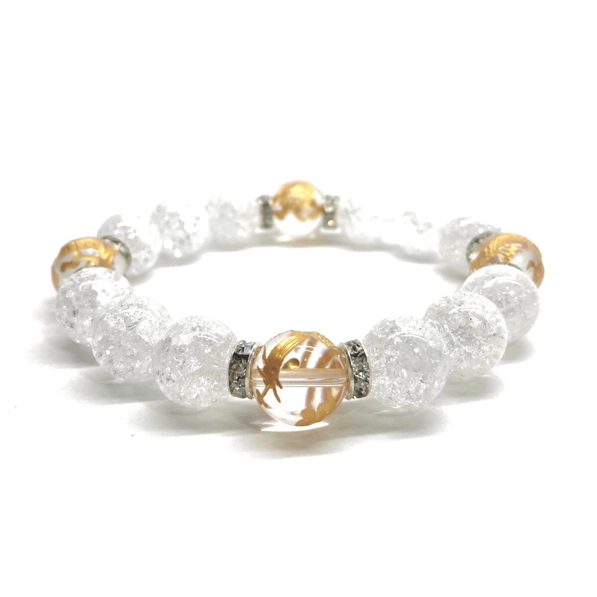 12mm 四神獣金彫水晶×クラック水晶 パワーストーン ブレスレット天然石 運気上昇 開運 健康運 厄払い お守り 青龍 白虎 玄武 朱雀 (シルバー)メンズ・レディース 男性・女性 数珠ブレス 開運